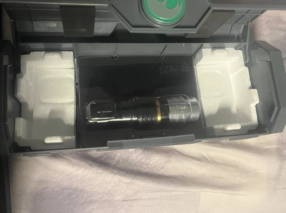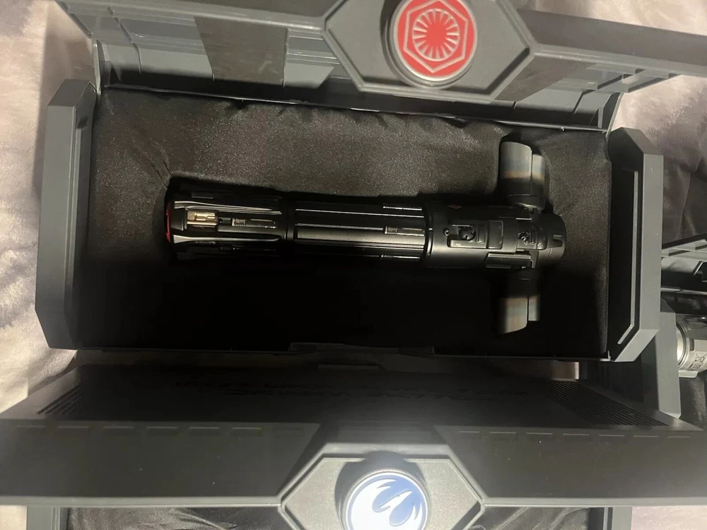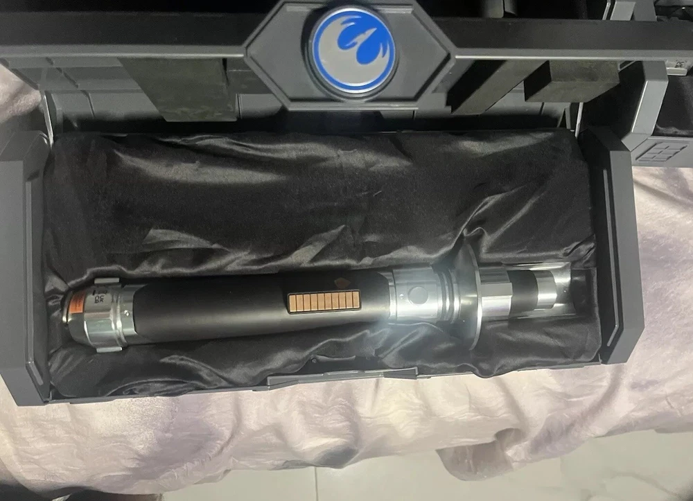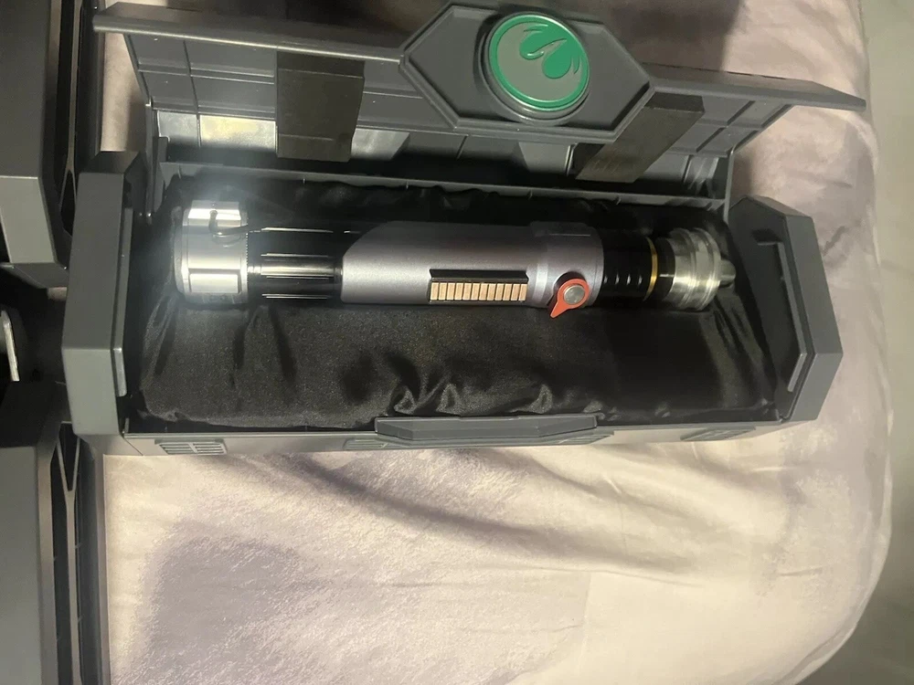 Three working saber hits used for display purposes, I dropped the Ezra bridger once while dusting causing the tiny dent shown, not noticeable. All are in great working order and come with what is shown. The "legacy lightsaber Bundle Used" is a collectible item from the Star Wars franchise, specifically designed for fans of science fiction and horror genres. This product includes a set of lightsaber and weapon replicas that are inspired by the iconic weapons seen in the Star Wars movies. Being a used bundle, it likely features a collection of lightsabers that have been previously owned or displayed, making it a unique addition to any Star Wars memorabilia collection.