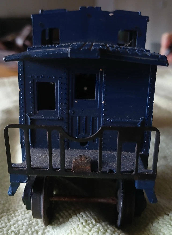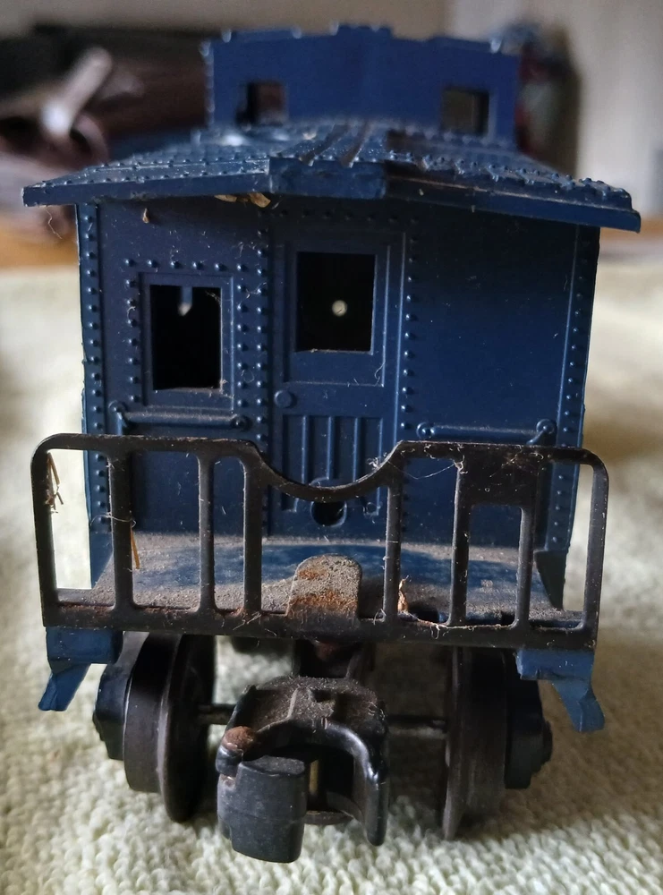 This caboose has little speckles of paint on it it is dusty dirty and has a little surface rust but nothing looks to be broke or missing. Please look at the pictures closely and you decide on the quality and thank you for your interest and God bless you.