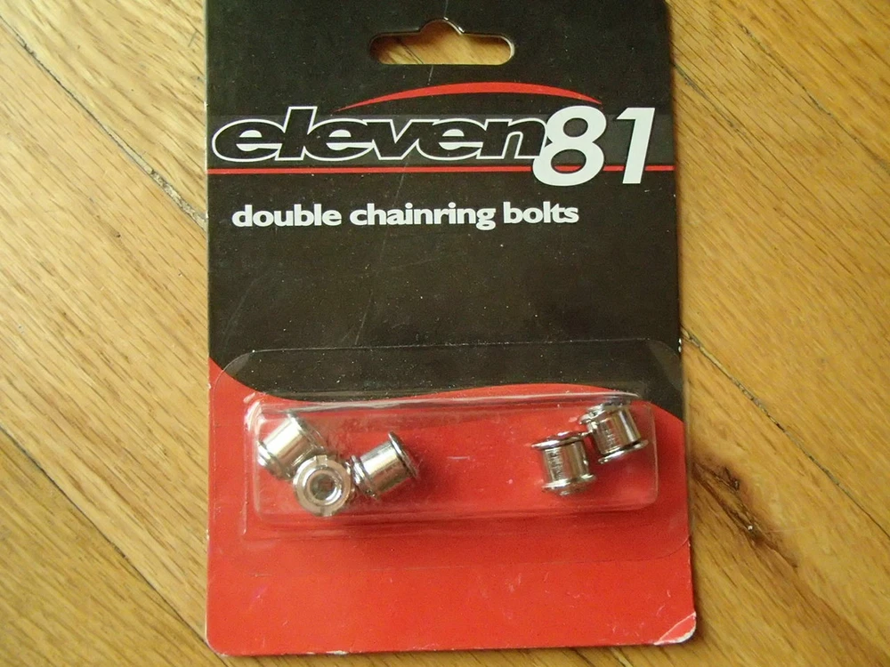 this listing is for 2 new in package sets of ELEVEN81 steel double chainring bolts Bolts M8X8.5 mm Set of 5 single chainring nuts and bolts. 5 bolts/nut sets in each package (so 10 total included in the listing) PLEASE ASK ANY QUESTIONS YOU MAY HAVE BEFORE PURCHASING