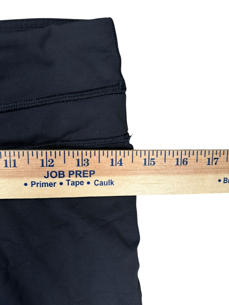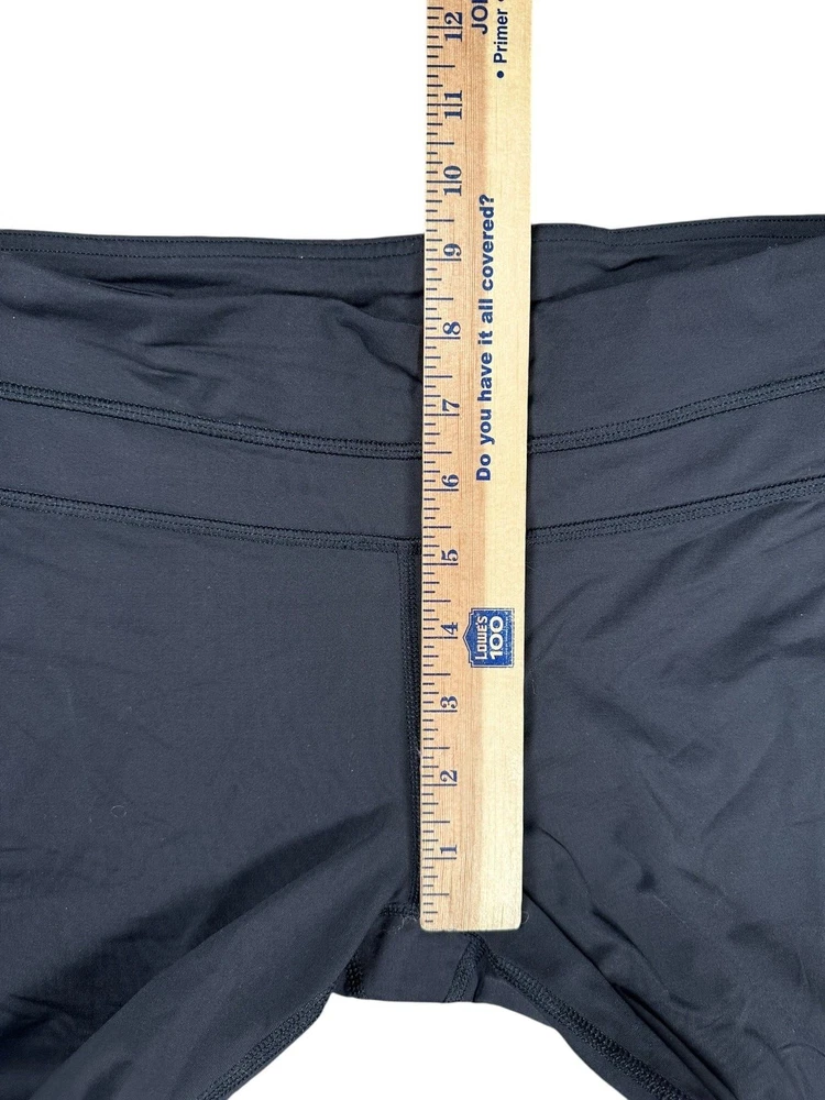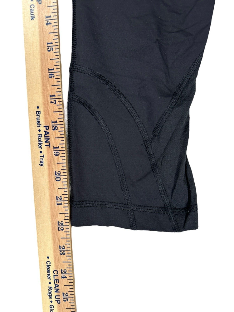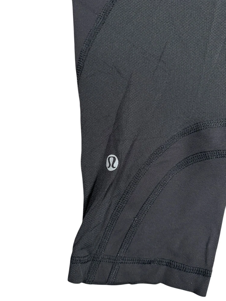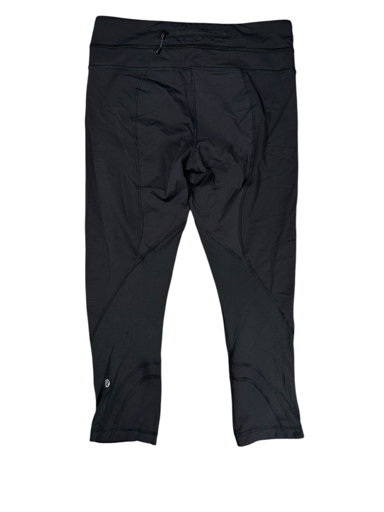 lululemon Black Cropped Running Leggings Size 6 Back Pocket Mesh Detail small flaw on seam / see photo Please refer to photos for size measurements / reach out with any questions or if you are wanting additional photos!