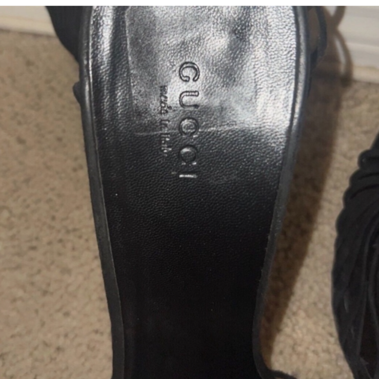 Brand: Gucci Department: Women Style: Strappy Upper Material: Suede Country of Origin: Italy Type: Heel US Shoe Size: 10.5 Color: Black