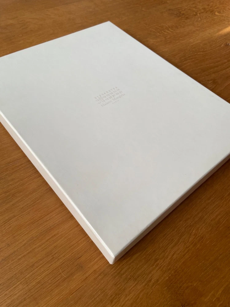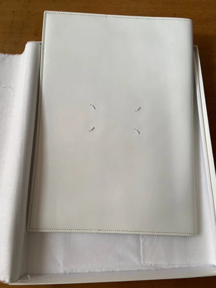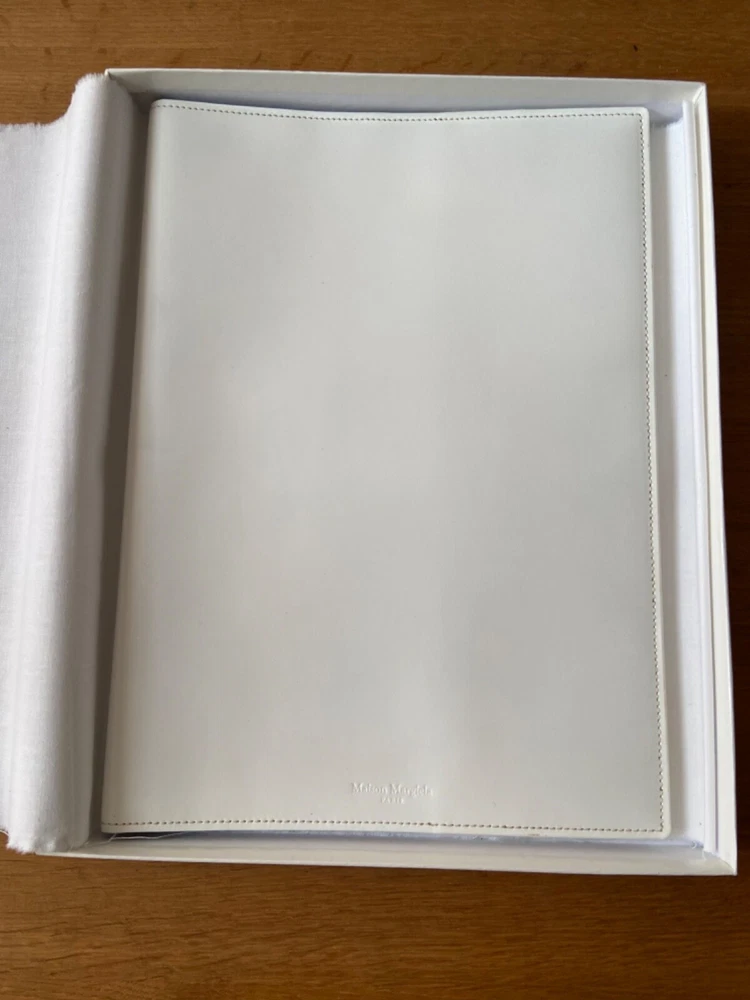 New never used Maison Margiela white leather document holder with original box and cloth. Large size around 12”x 8.5”.