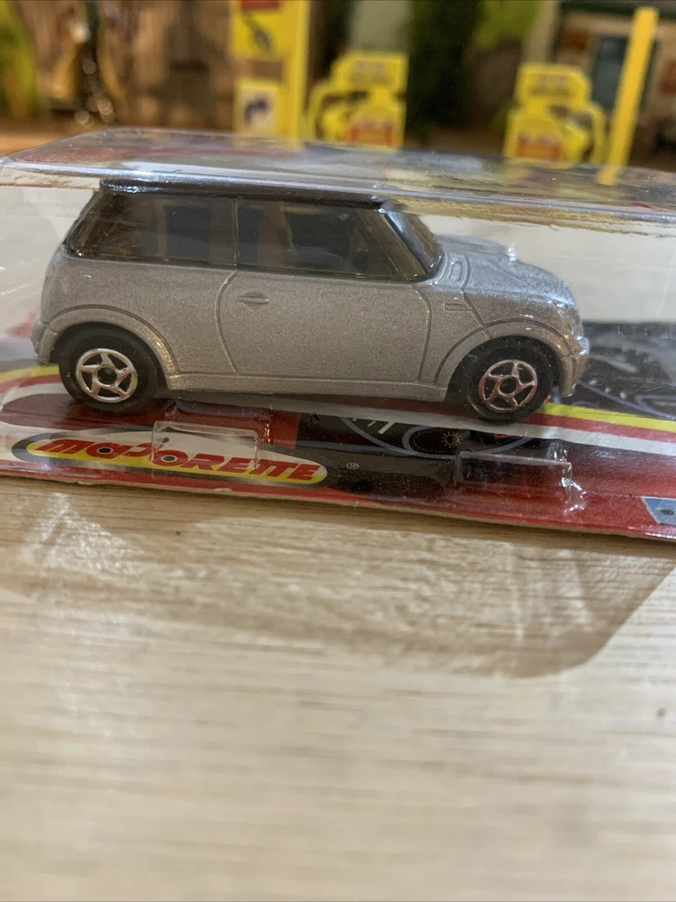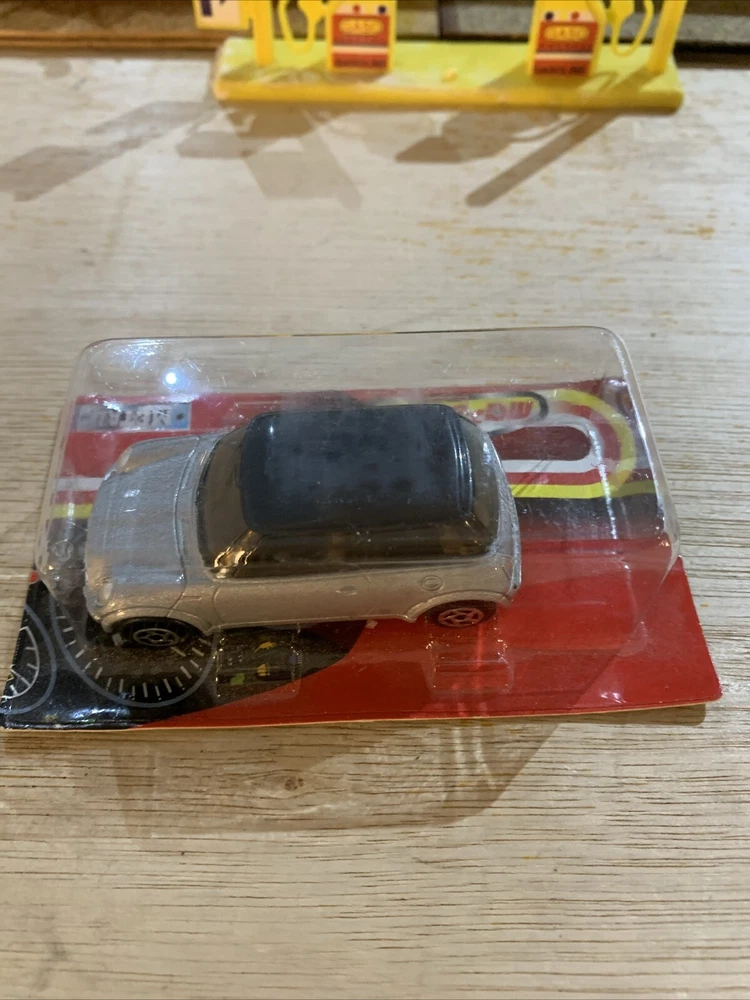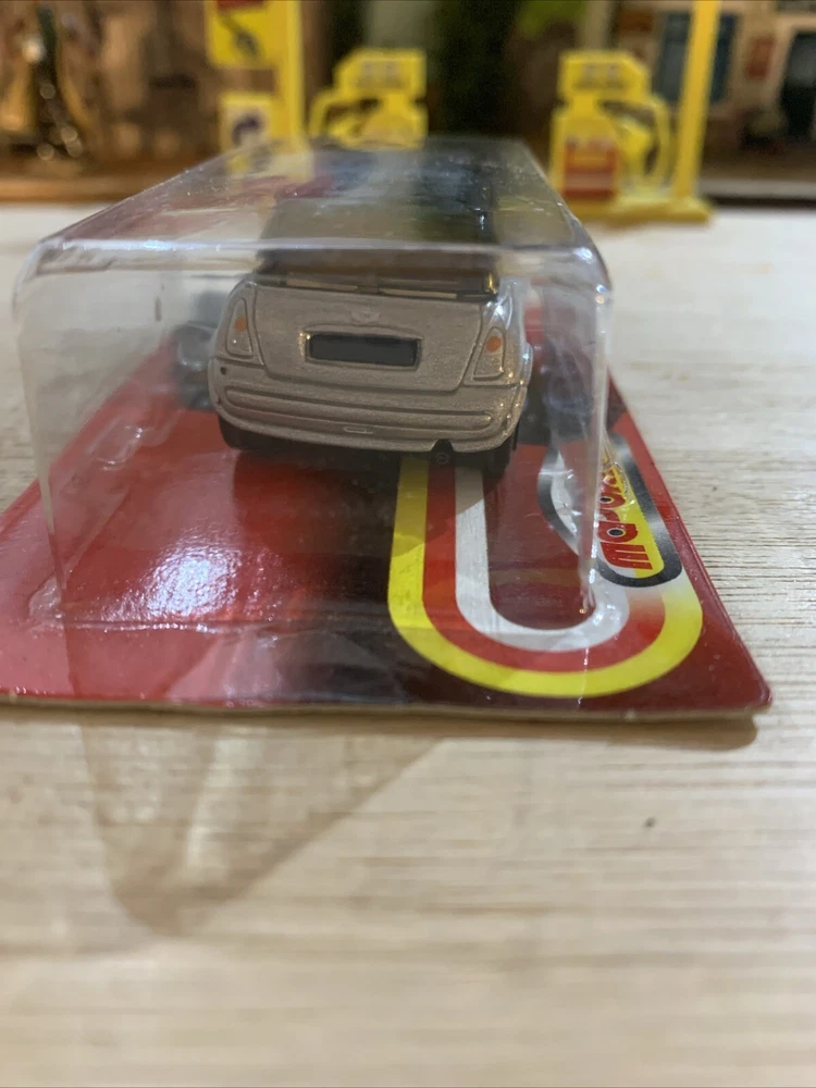 This is a Majorette 1:64 scale Mini Cooper toy car, which comes new on card packaging. The miniature vehicle is a detailed recreation of a contemporary Mini Cooper, perfect for collectors or fans of diecast cars.