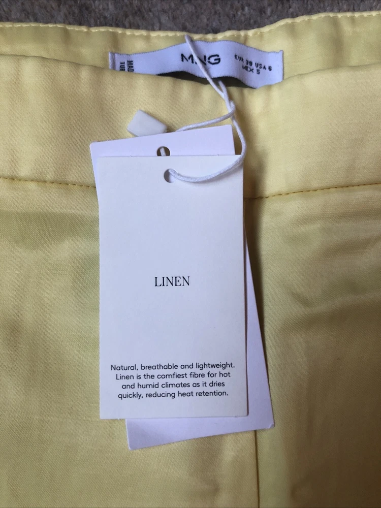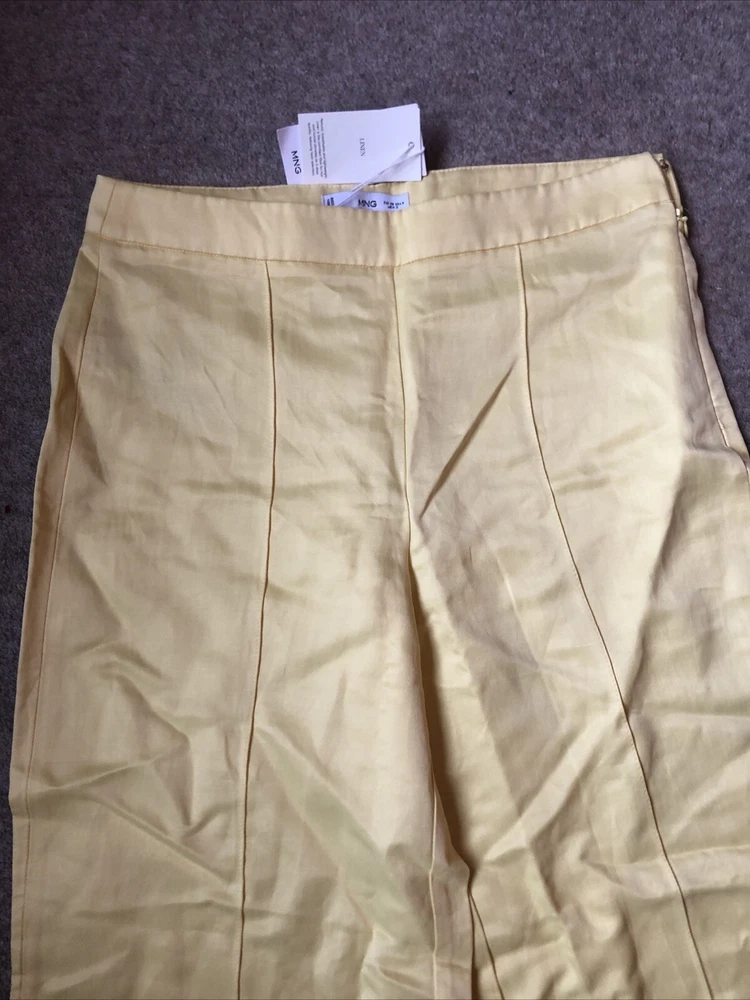 mango linen Pantaloon trousers Cropped Straight Leg Size UK10 In Yellow. Condition is New with tags. Dispatched with Royal Mail 2nd Class.