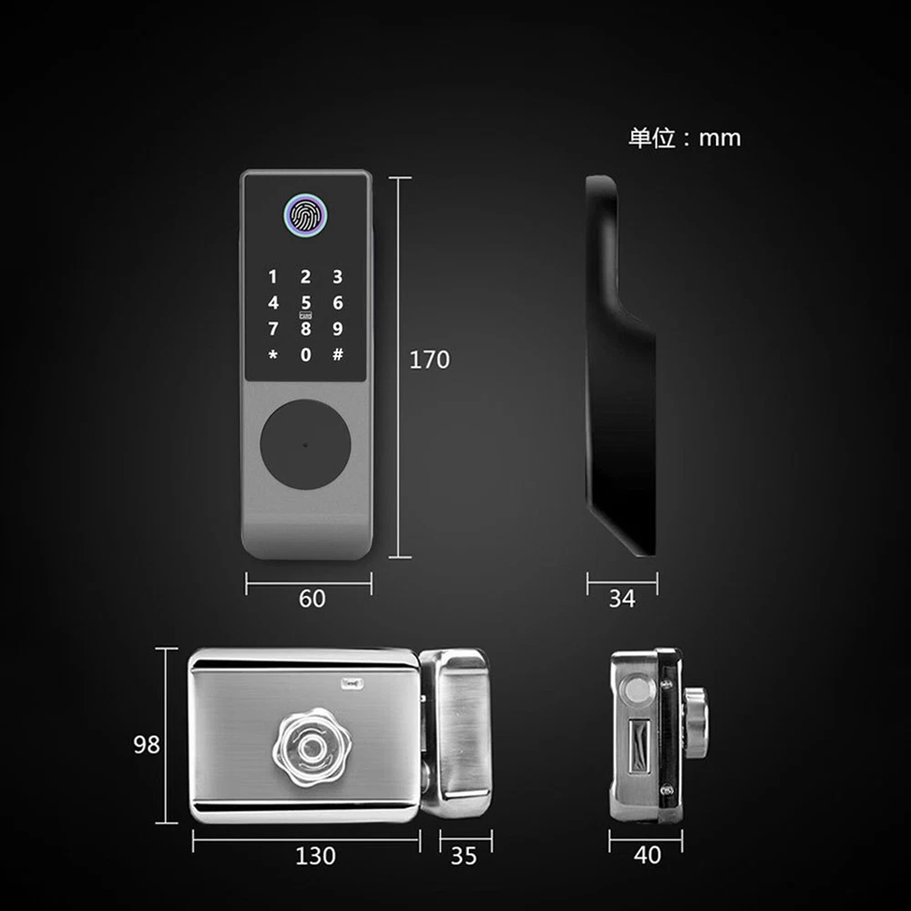 Description: Pls feel free to contact us if you have any question. Waterproof Smart Lock Wifi Double Side Fingerprint Lock Outdoor Gate Digital Rim Waterproof Tuya Smart Lock Wifi Double Side Fingerprint Lock Outdoor Gate Digital Password Remote App Home Electronic Rim Lock G23 smart lock installation video: No Wiring IP66 Waterproof Outdoor Fingerprint Door Lock, Best For Outdoor Gate Door. 1. Waterproof mask 2. Waterproof silicone pad 3. The Motherboard inside fully filled with waterproof glues. 4. Battery compartment with rubber sleeve. 5. The lock can be exposed directly to rain and sunshine Specification: Model: G23 Material: Zinc Alloy Available color: Black+Grey Panel Sizes: 168(mm)*34(mm)*60(mm) Unlock modes: Fingerprint /Password /IC Card / APP / Mechanical Key Supported app name: Tuya app, TTlock app Fingerprint recognition time: 0.25S Fingerprint Users: 100pcs Card Users: 100pcs Password Users: 100pcs Power supply: 4pcs AA battery or 12V DC Operating temperature: -25 to 55 Centigrade Suitable door thickness: 20-80mm( Wooden door, Steel door, Iron door, other metal doors) Emergency Charging: Mircro USB port Note: Please allow minor deviation due to manual measurement. Due to the difference between different monitors, the picture may not reflect the actual color of the item. Payment: We accept PayPal ONLY currently. Please make sure you have a valid/confirmed PayPal account prior buying. Item will be shipped within 1-5 business days as soon as the payment verified. We ship to PayPal registered address, please make sure your address in PayPal was matched with your current location. Shipping: Shipping Estimated Delivery Time 1.Economy(without tracking): 11-35 working days 2.SpeedPAK(with tracking): 8-12 working days 3.EMS(with tracking): 7-10 working days, need to pay extra shipping cost 4.DHL(with tracking): less than 7 working days, need to pay extra shipping cost For faraway region or countries, the transit time may be longer than Overall Transit Time Frame. Notes, the delivery time may vary due to public holidays, natural disasters, customs issue and other unexpected impact, etc. Feedback: Please leave us a Posive Feedback if there is nothing wrong with the item, we will appreciate it and do the same for you.
