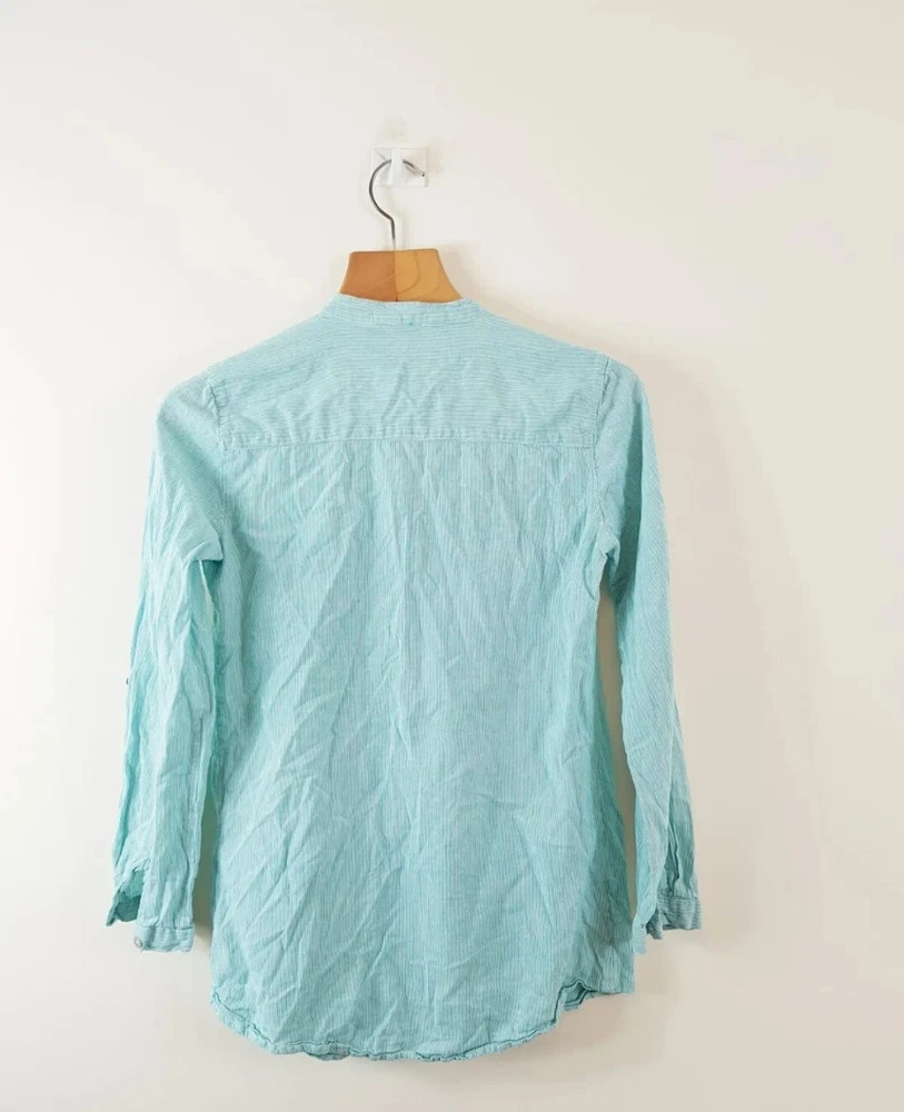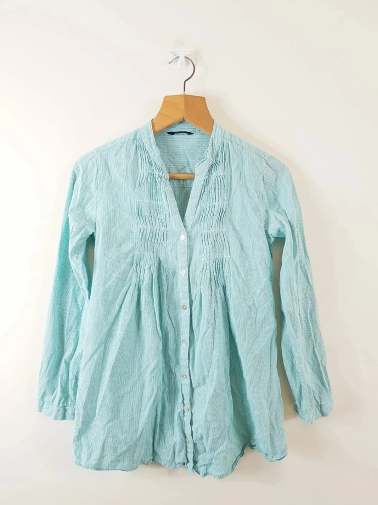 Add a pop of colour to your wardrobe with this M&Co Sandstone green paisley pattern shirt. The long sleeve shirt features a collared neckline with button closure and is made from 100% cotton jersey fabric. It's perfect for any occasion from casual outings to formal events such as weddings or parties. The lightweight shirt is machine washable and has accents of buttons. It comes in a regular fit and size 10, making it a great addition to any women's clothing collection. This limited edition shirt is not only comfortable but also stylish, with its colourful theme and solid pattern design. Made in the United Kingdom, it's perfect for the winter, autumn, and spring seasons. In Good Used Condition Measurements In inch : Please see photos above for all measurements I will ship this item out via Evri 2-3 Day Mail with a tracking number for confirmation I ship items out EVERY DAY so EXPECT a QUICK delivery! Please feel free to ask any questions you may have I answer most questions instantly! PLEASE NOTE THAT ALL OUR ITEMS ARE %100 AUTHENTIC Please Note that all our items are from smoke and pet free Environment. #06/04/23# (B94) PLEASE VISIT MY STORE AND CHECK MY OTHER ITEMS THANK YOU