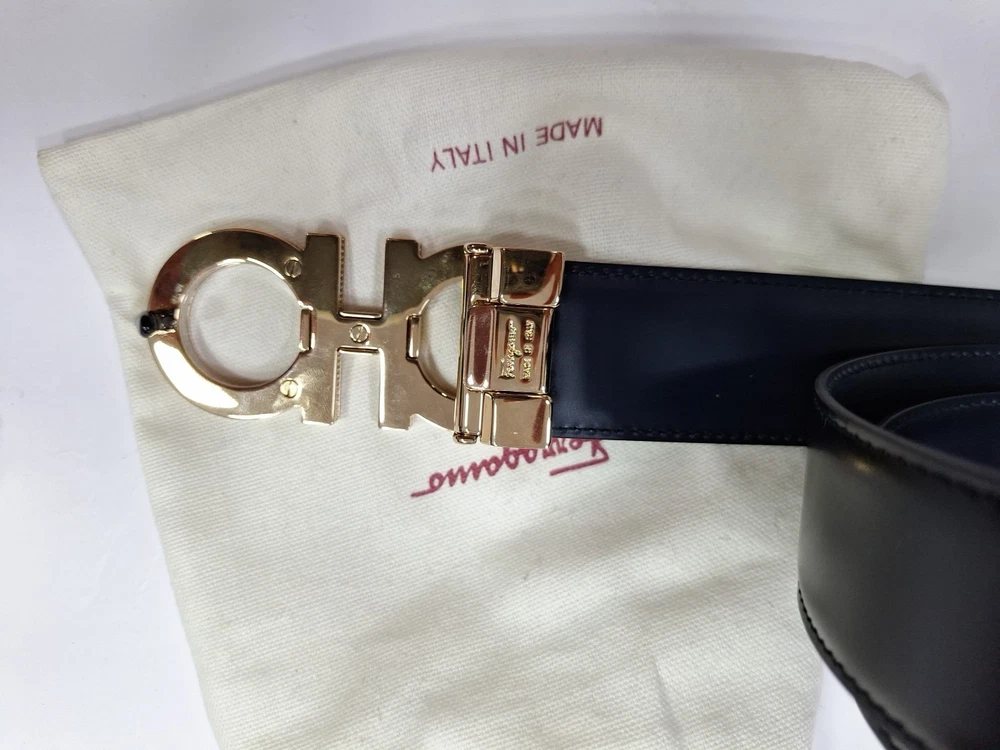 HERMES Constance H Belt in Box Calf Togo Leather Black Brown Used Men SHW