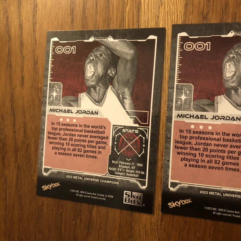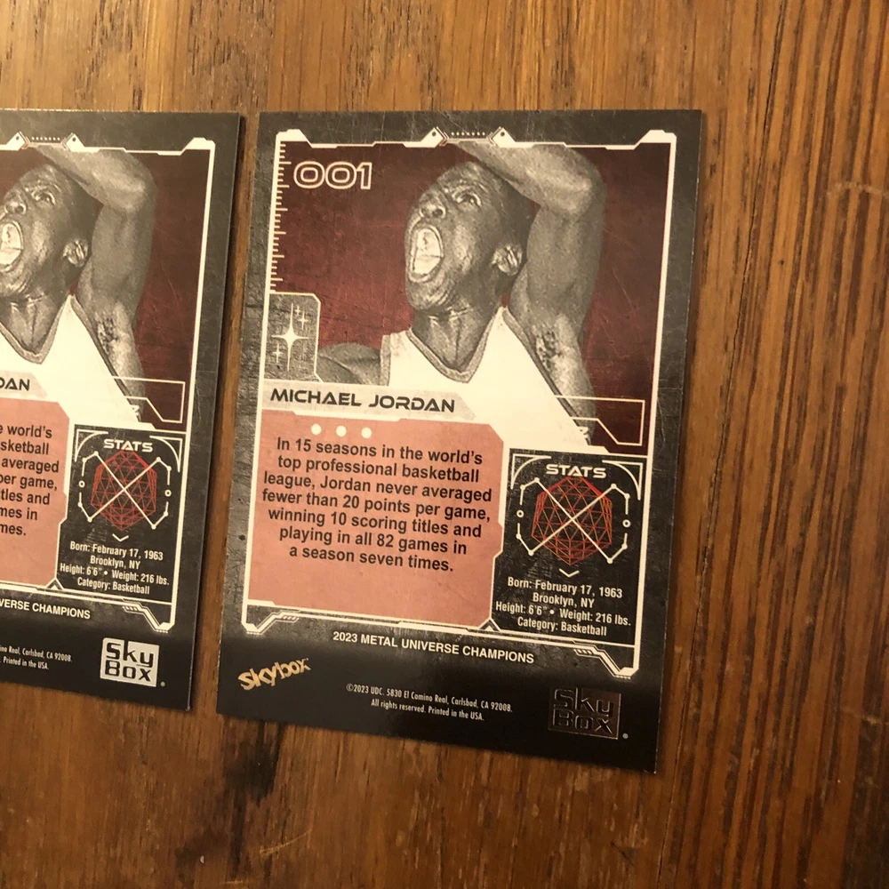 Winner gets all 3 Jordan cards from 2023 Metal Universe Champions set pictured. All cards are in excellent condition with most suitable for grading (See pics). Always a good time to invest in the all time greats like Jordan. Lot includes: 2x Base #1 1x Aqua Parallel #1 I will combine shipping for multiple items so please check out my other listings!