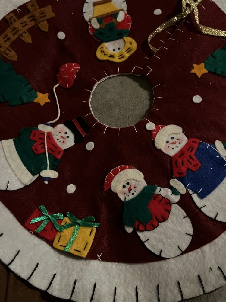mini christmas tree skirt HOMEMADE 6” From 2 1/2” Middle Opening Total 14”