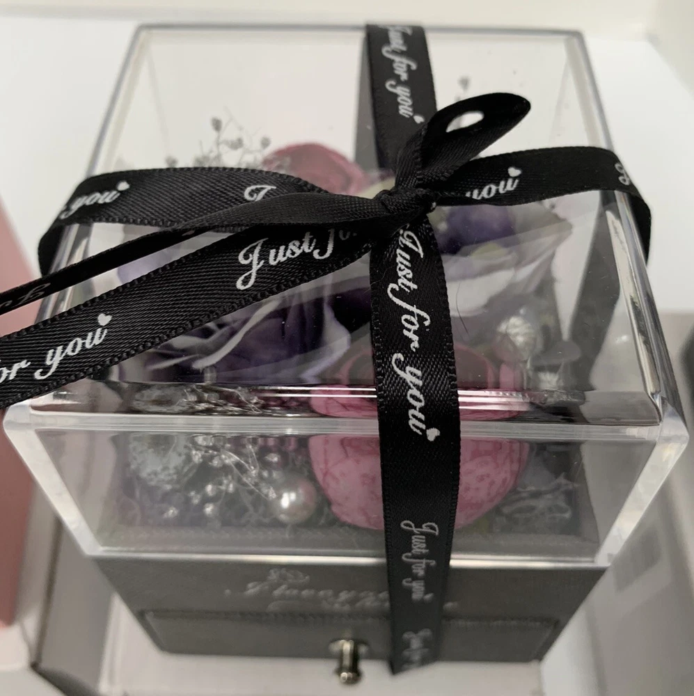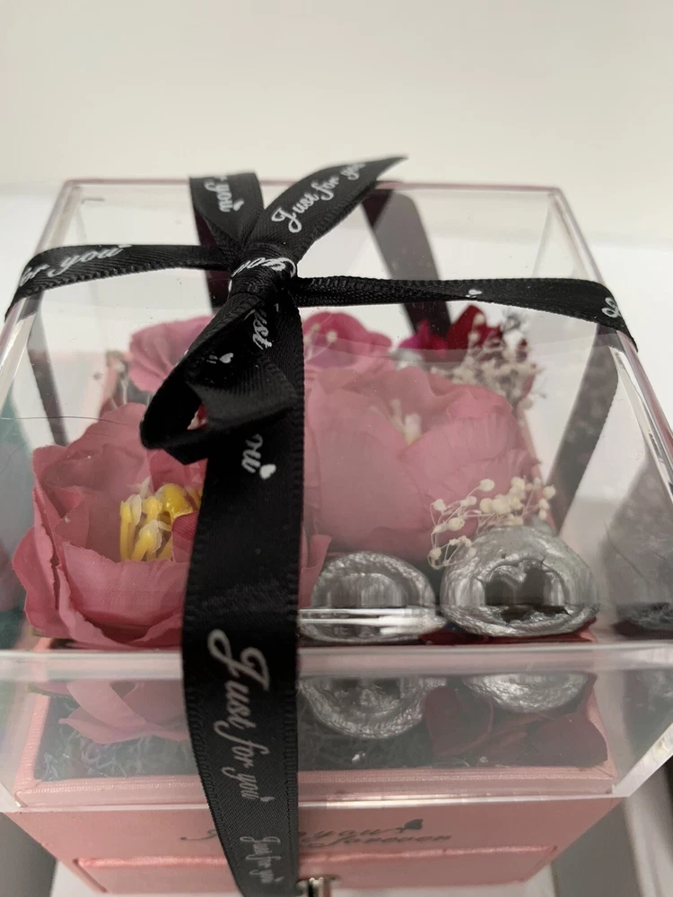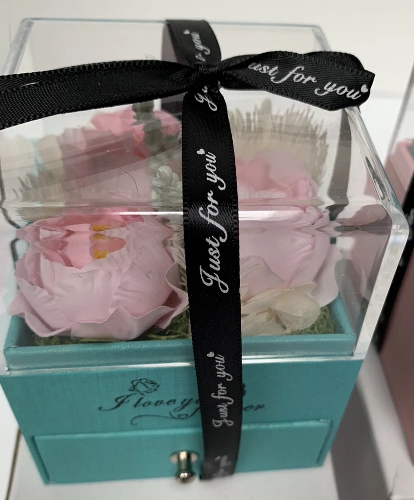 This beautiful jewelry box is the perfect gift for Mother's Day! It features a square shape with a pink color and dried flowers on the top layer for a touch of elegance. The velvet lining material provides a soft and protective cushion for your precious jewelry pieces. Measuring 4 inches in length, 3 inches in depth, and with an item width of 3 inches, this handmade jewelry box has a necklace drawer and can hold one piece of jewelry. It comes with a gift box and is suitable for women of all ages. The paper/cardboard and velvet material combination adds durability and a sophisticated touch. This jewelry box is perfect for organizing and storing your jewelry collection.