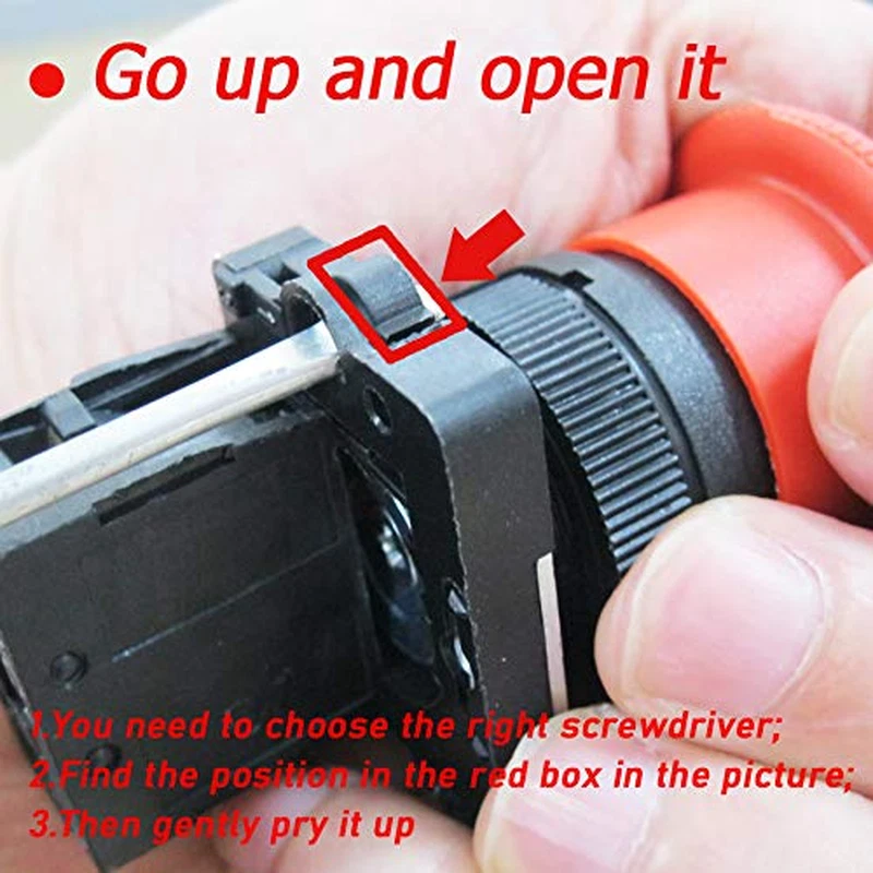 Product Name : Emergency Stop Push Button Switch ; Contact Type : 1 NC Ith:10A ; Ui:600V ; Type :Latching; Button Diameter : 40mm/1.6" ; Mount Hole Diameter : 22mm / 7/8";Fit Panel Thickness(adjustable) : 6mm / 15/64"(max.) Overall Size(Approx.) : 39 x 29 x 73mm/ 1.5" x 1.1" x 2.9"(L*W*H); Package Content : 1 x Emergency Stop Push Button Switch This switch Push to stop and lock, twist to reset. The switches are structured compactly and operated quickly and gently. For emergency stop in industry with the conspicuous red mushroom cap.