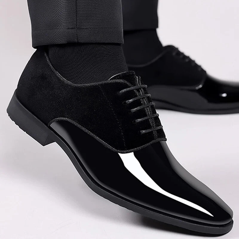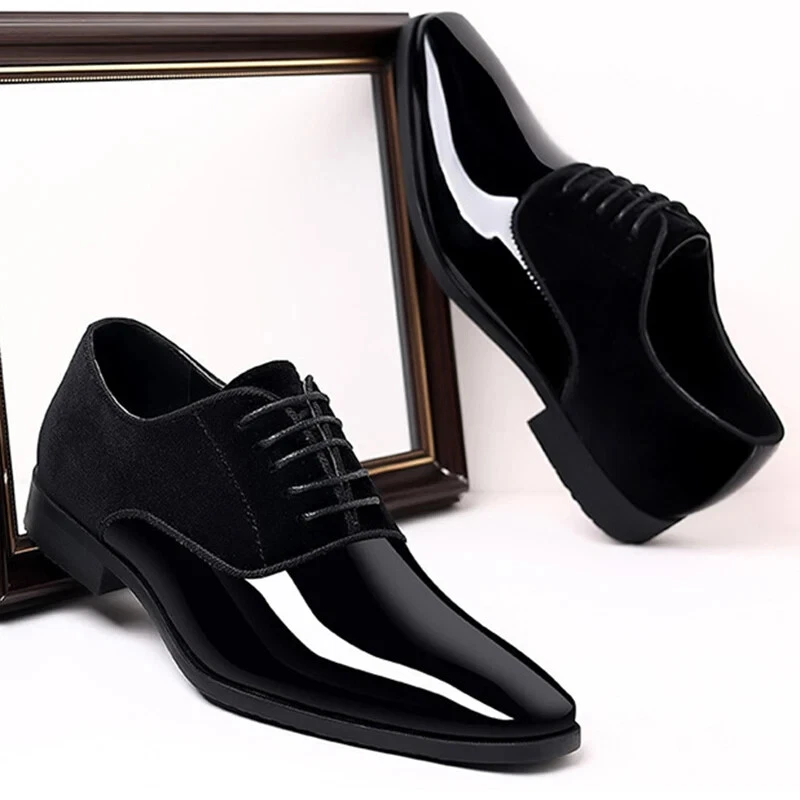 Men Pointed Toe Real Leather Lace Up Business Formal Dress Shoes Crocodile Print