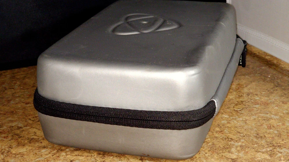 The Atomos Ninja Atomos V softshell case in gray glossy color is a Neoprene carry-on designed to fit a camera. It features an adjustable design to securely hold the camera while providing protection during transport.