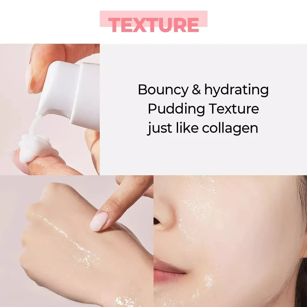 KEY INGREDIENT : Collagen, Elastin, hyaluronic acid Search "numbuzin" on YouTube! SKIN TYPE / SKIN CONCERN : All skin types / Decreased skin elasticity, Loose face line, Dehydrated skin, Dull skin texture TEXTURE : Bouncy pudding texture just like collagen