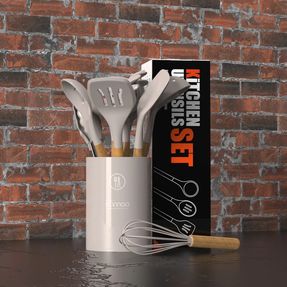 HEAT-RESISTANT, NON-MELTING, WOODEN HANDLE - The silicone cooking utensils can withstand temperatures up to 446°F, even if they are used in a high-temperature frying environment, they will not melt or produce smoke. The wooden handle feels comfortable prevents heat transfer, so you don’t have to worry about scalding the chef’s hands. These cooking utensils set is a good gift choice for mom. Note: Each handle has a slightly different color and texture SAFE, BPA FREE, FOOD GRADE SILICONE, ODORLESS - The kitchen utensil set are made of high quality food grade silicone.BPA free. no harmful smell. Note: It must be soaked for half an hour when it is used for the first time, and then exposed to the air for about 3 hours, the original smell of silica gel will disappear. The silicone cooking utensil is safe to use for any type of food. These kitchen utensil set does not react with food or beverages FULLY MEET THE NEEDS OF THE KITCHEN, NO MORE WASTE OF MONEY - These kitchen utensil sets include 9 cooking tools and 4 baking tools. A large utensil holder. Buy it at one time and get what you need in the kitchen. No more waste of money. Deep Soup Ladle, Solid Serving Spoon, Slotted Spoon, Flexible Spatula, Round Spatula, Pasta Server, Slotted Turner, etc. These silicone kitchen utensil perfectly protect the surface of the non-stick pan from scratches NO GAPS, NO FOOD IS CAPTURED, EASY TO CLEAN - Add stainless steel to each cooking utensil to maintain an initial optimal memory state. Never warp. And full of flexibility. One-piece molding without any gaps to capture food. Make cleaning easier. Because of the wooden handle, these kitchen tools are not suitable for dishwasher cleaning,but the small spatula, food tongs and utensil holder are dishwasher safe, As suggested on the packaging GIFT SELECTION AND RAPID AFTER-SALES RESPONSE - The silicone cooking utensils sets are an excellent choice for housewarming, wedding registry, and New Year gifts. We are committed to delivering speedy and supportive assistance to address any queries or concerns you may have. Feel free to contact us via the Walmart Buyer Page, and we will attentively listen and promptly respond within 12 hours