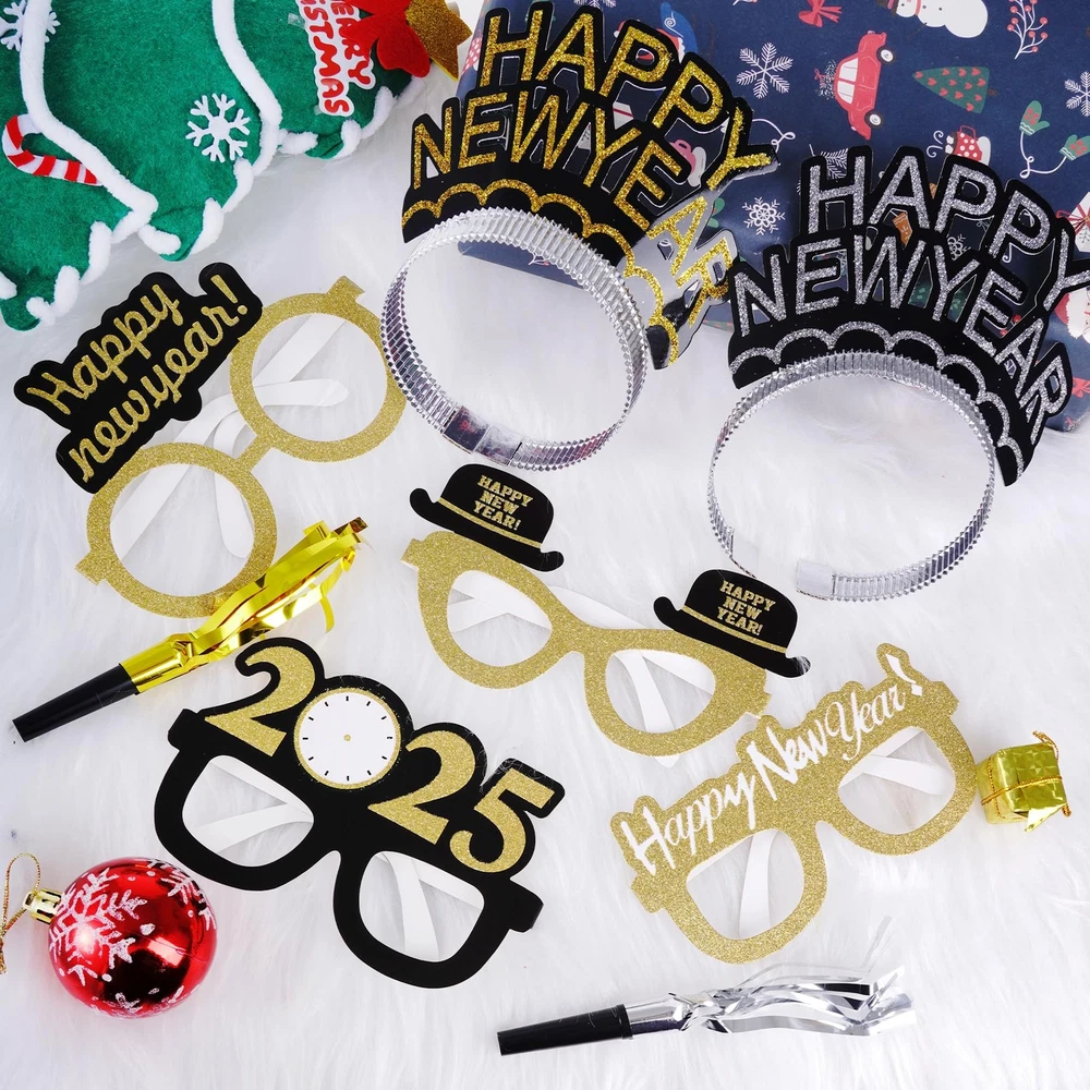obmwang 36 Pieces New Years Eve Party Supplies Including Happy New Year Eyeglasses Happy New Year Headband and Metallic Fringed Noise Makers for 2025 New Year's Eve Party Favors Description Specifications: Material: card board, plastic Color: gold, silver, black Size: as shown in the picture Quantity: 36 pieces Package List: 12 x Happy New Year Eyeglasses 12 x Happy New Year Headbands 12 x New Year's Horns and Blowouts Notes: Manual measurement, please allow slight errors in size. The color may exist a slight difference due to different screen displays. Package Includes: you will get 36 pieces new year eve party supplies, including 12 new year party eyeglasses(4 styles in total, 3pcs for each), 12 New Year party headbands and 12 noise makers party favors, nice combination to meet your various need in New Year party Quality Material: The happy new year glasses are made of card board, lasting and wear-resistant; the happy new Year headband is made of aluminum foil paper, has a certain thickness, not easy to deformation; the flashing metal tassel noise maker is made of high quality plastic, reusable and not easy to break Suitable Size: the new year glasses measures appro: 6.1 x 5.3inch/15.5 x 13.5cm, happy New Years headband is about 7.1 x 4.3 inches/ 18 x 11 cm and noise makers is 17cm/6.69inch in length, suitable size for most kids and adults Wide Usage: These 2025 New Year party supplies are suitable for New Year's party, Christmas, wedding, family party, friends party, birthday, masquerade, cosplay, etc. Add more joyful atmosphere to your events, a must have for Happy New Year's Eve celebration Great Gift: These 2025 new year eyeglasses, new year party headbands and funny party noisemakers are designed with exquisite patterns and colors , which is full of new year elements, novel and interesting, wonderful decorations for New Year's parties, which can be applied as a gift to send your families, friends, girlfriend on new year themed party, Christmas party, birthday parties etc Shipping from the USA All of our products are shipped from the USA, ensuring quick delivery to your destination. Payment We offer the following payment methods: PayPal, credit card, bank transfer, and eBay's secure payment system. Free Shipping & Free Returns Shipping within the USA is FREE. Additionally, any return is absolutely free for you. Risk-Free Purchase You have the option to return an item within 30 days without any justification. We cover the return shipping costs! Fast Shipping We ship immediately upon receipt of payment. Generally, the package is delivered within 2-3 days in the USA. If it takes longer, we will contact you. Quality and Costs Made in Europe, USA, China No customs fees or additional charges Total satisfaction guarantee Invoice with declared VAT available upon request in .pdf format Feedback Your feedback is very important to us. After you pay for your purchase, you will automatically receive positive feedback from us.