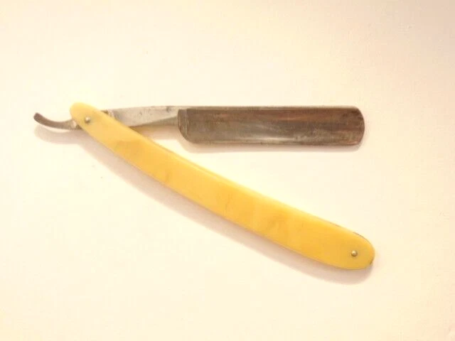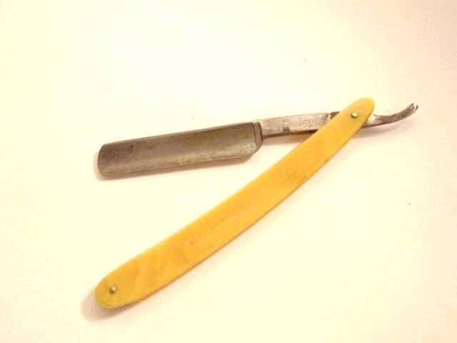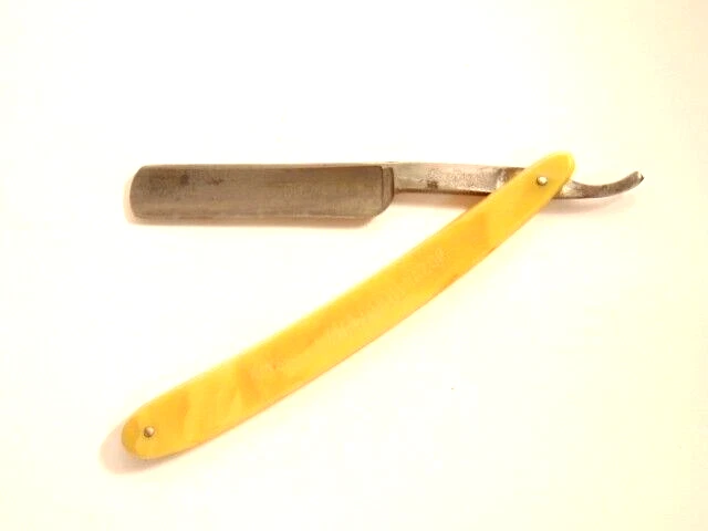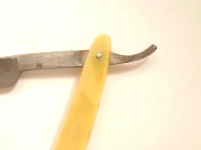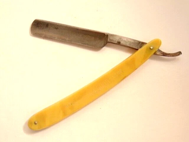 Here is a pre-owned straight razor labeled on the blade "King's Extra Good Razor". Near the rivet, the straight razor shows the maker's information - King's Razor Mfg. Co., Indiana, PA. The razor measures about 6 inches long. The blade alone is about 5 1/2 inches long and 5/8th inches wide. Please see pictures and ask any questions . Thank you for looking. (Inv 24,770)