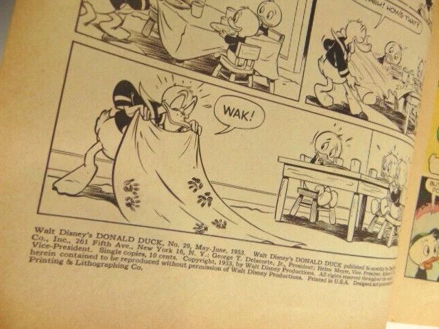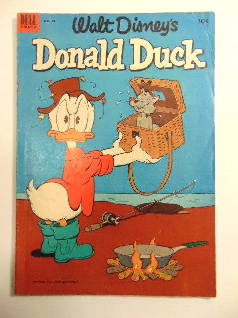 Here is a pre-owned vintage Walt Disney's Donald Duck 10 cent comic book, #29, May-June, 1953. It was published by Dell. It shows wear at the spine, edges and corners. It also has some yellowing on the inside pages. It is not graded. Please see the pictures and ask any questions. Thank you for looking. (Inv 28,101)