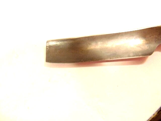 Here is an older, pre-owned straight razor marked "Progress" & logo on both the handle and blade. The razor measures about 6 inches long. The blade measures about 5 1/4 inches long and is about 5/8th inches wide. It shows staining, dirt and wear. Please see the pictures and ask any questions. Thank you for looking. (Inv 22,971)