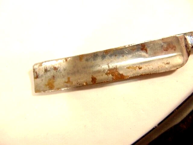 Here is a pre-owned older straight razor labeled "Griffon XX". The razor measures 6 1/8th inches long. The blade is about 5 1/2 inches long and 5/8th inches wide. The razor blade shows corrosion and wear. Please see pictures and ask any questions . Thank you for looking. (Inv 25,538)