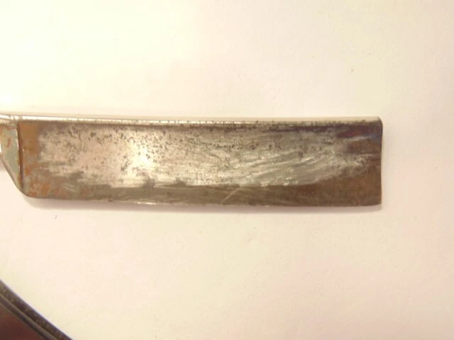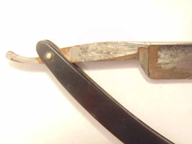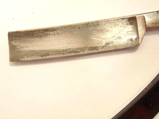 Here is a pre-owned older used Geneva Cutlery Co. straight razor. This is a usable razor but has been used and shows tarnish, dirt, wear including some scratches. The blade does not center well and needs guided into the groove. Please see the pictures and ask any questions. Thank you for looking. (Inv A27,245)