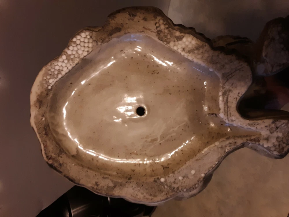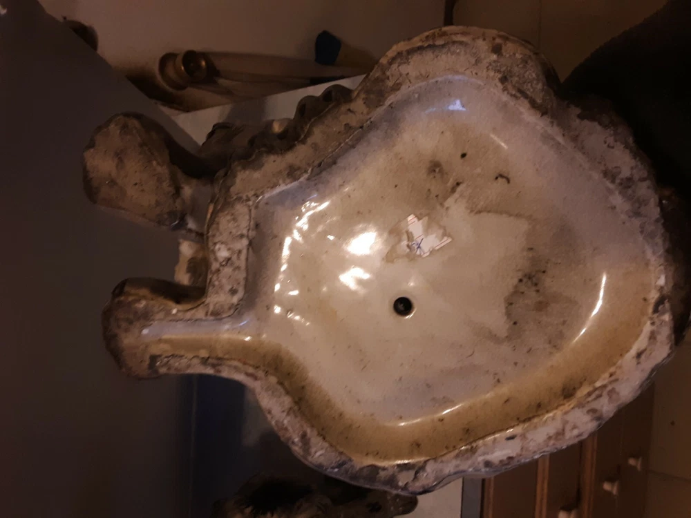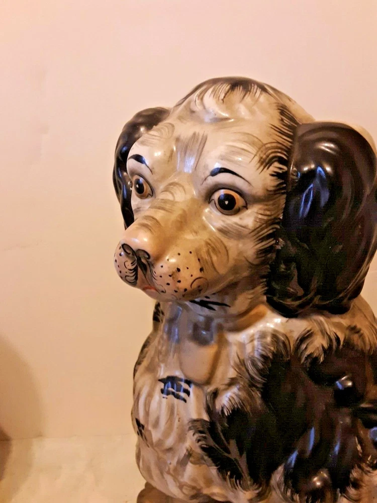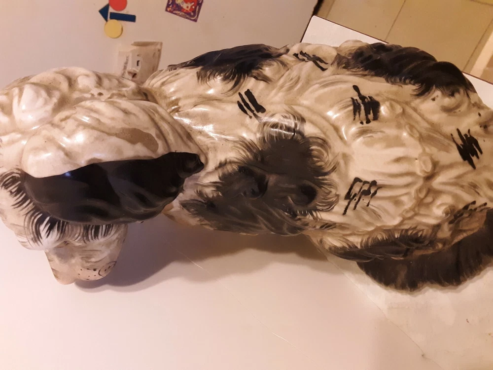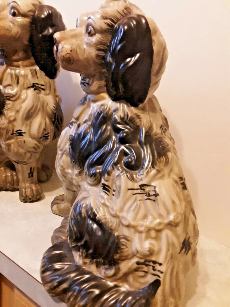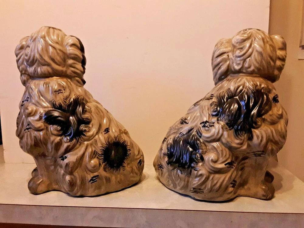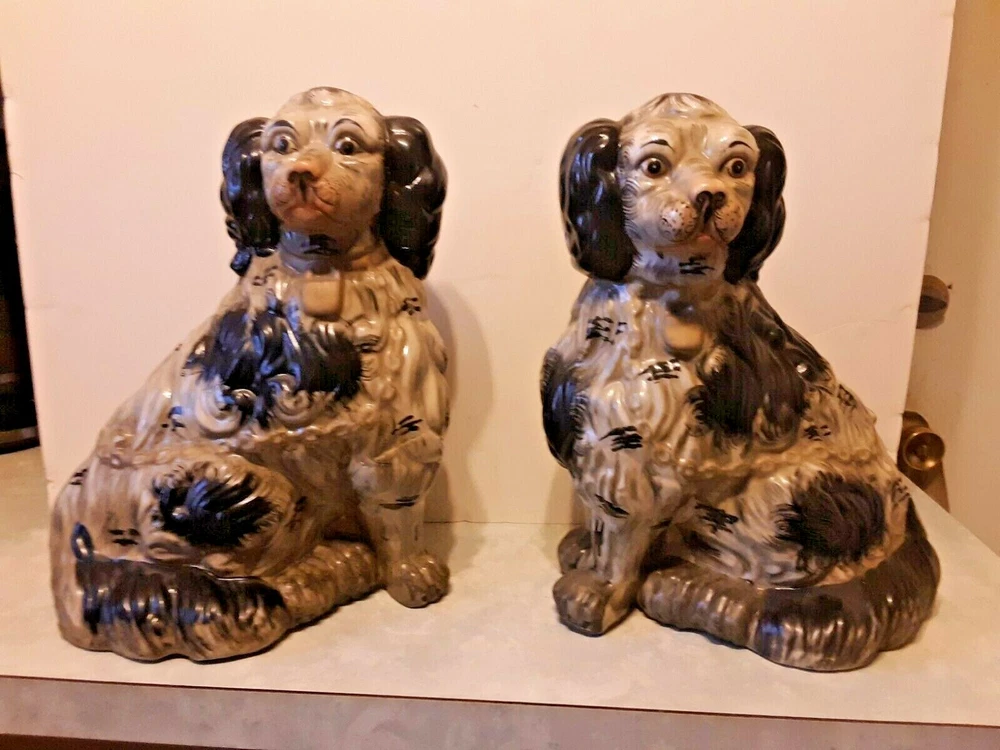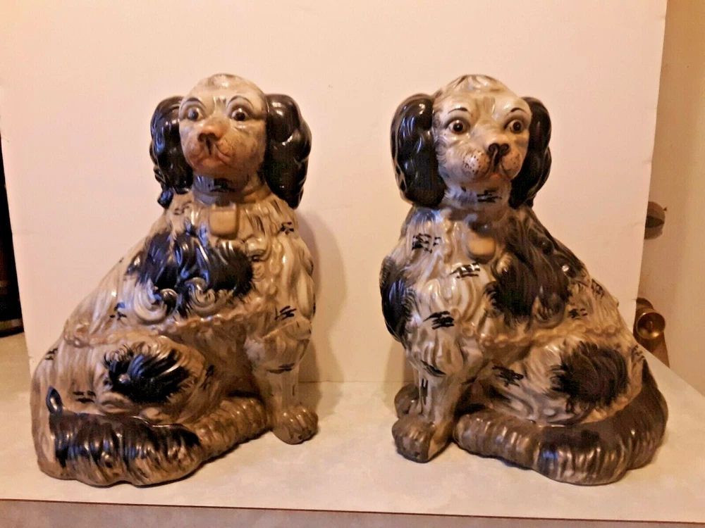These are circa 1940, the bigger one is 14.5" tall and the other about 14". They are about 10.5" across along the biggest part of the base. They are from circa 1940; note hairline crack on the one that is shown in pics. Each weighs almost 7 lbs.