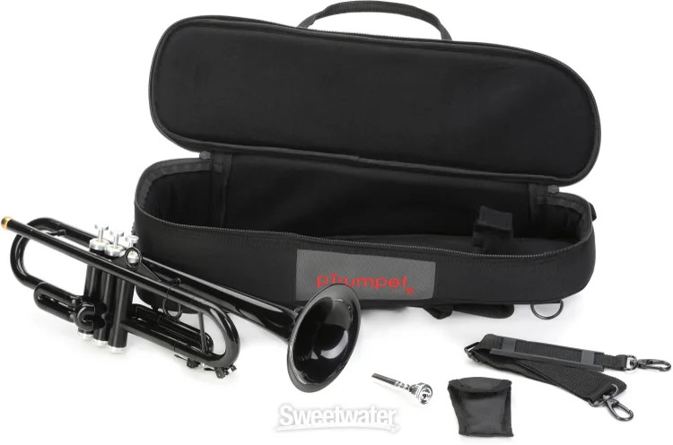 Beginner-friendly, Durable Metal-polymer Trumpet Despite costing around half the price of a beginner brass trumpet, the pTrumpet hyTech is a legitimate instrument that feels right at home among real brass instruments. Because its main body is made from recyclable ABS plastic, this stunning horn weighs in at just 1.4 pounds — including an aluminum valve system and a hybrid leadpipe design! The pTrumpet hyTech also dons a unique right-hand pinky rest that encourages smaller players to maintain good technique and posture, resulting in longer, more productive practice sessions. Lastly, the pTrumpet hyTech comes ready to play: you’ll find a classic, beginner-friendly 7C mouthpiece packaged in its padded gig bag, so you can get to playing straight away. Durable, dependable, and affordable — that's the pTrumpet hyTech.That's so metal! A successor of the beloved pTrumpet 2.0, the hyTech has been brilliantly redesigned to produce an even richer sound that blends seamlessly Sweetwater is an Authorized pBone Music Dealer Genuine Open Box Item Sweetwater's 2-year warranty* pBone Music pTrumpet hyTech Trumpet - Black Hybrid Metal-Polymer Trumpet with 5" Bell, Medium-large Bore, Water Key, 7C Mouthpiece, and Fabric Carrying Bag - Black Beginner-friendly, Durable Metal-polymer Trumpet Despite costing around half the price of a beginner brass trumpet, the pTrumpet hyTech is a legitimate instrument that feels right at home among real brass instruments. Because its main body is made from recyclable ABS plastic, this stunning horn weighs in at just 1.4 pounds — including an aluminum valve system and a hybrid leadpipe design! The pTrumpet hyTech also dons a unique right-hand pinky rest that encourages smaller players to maintain good technique and posture, resulting in longer, more productive practice sessions. Lastly, the pTrumpet hyTech comes ready to play: you’ll find a classic, beginner-friendly 7C mouthpiece packaged in its padded gig bag, so you can get to playing straight away. Durable, dependable, and affordable — that's the pTrumpet hyTech. That's so metal! A successor of the beloved pTrumpet 2.0, the hyTech has been brilliantly redesigned to produce an even richer sound that blends seamlessly with fully brass instruments. The pTrumpet hyTech’s 5-inch bell — which improves balance by adding weight to the prominently plastic end of the instrument — works with its patented hybrid leadpipe to deliver an effortlessly powerful sound. Included with the pTrumpet hyTech is a renowned metal Bach 7C mouthpiece that inspires crisp articulation and sharp tone, helping players achieve that authentic brass trumpet sound. Experience the best of both worlds with a patented hyTech design The pTrumpet hyTech starts with a body made from ABS plastic, a revolutionary material that’s lightweight and made to last. Then, a medium-large bore flares out to a slightly oversized metal-polymer bell. You'll also find a hybrid metal-polymer leadpipe, a set of stainless steel sleeved pistons, and aluminum valve caps, stems, and finger buttons. Finishing touches include metal water keys and silicon seals on its first- and third-valve tuning slides. Get to know pInstruments Thanks to pInstruments, playing a brass instrument is more accessible than ever. Every pInstrument is remarkably affordable, long lasting, and made from incredibly high-performing glass fiber, a hard-wearing plastic that effectively mimics the sound of traditional brass instruments. They offer three instruments for true beginners — pBugle, pBone Mini, and pBuzz — as well as more advanced horns like the pCornet, the pTrumpet, and the pBone. Because of their practicality, pInstruments have grown increasingly popular among music educators and young musicians. Still, musicians at Sweetwater find that they are equally appropriate and fun to play for professionals, too. pTrumpet hyTech Trumpet Features: Lightweight beginner trumpet with a hybrid metal-polymer construction Ergonomic grip allows players to practice for longer amounts of time Shiny silver, gold, and black finishes blend in with traditional metal trumpets Medium-large bore with 5-inch bell Encourages proper posture and technique thanks to its 1.4-pound design Responsive stainless steel sleeved pistons Includes a Bach 7C mouthpiece Comes equipped with a padded gig bag Specification Detail Key Bb Level Student Finish Black Bore Medium-Large Bell 5" Bell Material Metal/Polymer Leadpipe Patented Hybrid Design Valves Stainless steel sleeved pistons Mouthpiece 7C Weight 1.4 lbs. Case/Bag Gig bag/backpack RETURN INFORMATION We want you to be completely happy with your purchase from Sweetwater. If you are not satisfied with your product, you may return it for a refund of the purchase price within 30 days. If your purchase was eligible for Free Shipping, the shipping cost will be deducted from your credit or refund. Returns must be in the complete and original packaging with all accessories and complete documentation (Owner's Manual, warranty card, quick start guides, etc.), show no signs of wear or use, and include a Return Authorization number or be subject to a restocking fee. Fast, FREE Shipping! Nearly every order received by 3PM Eastern ships the SAME DAY! FREE shipping to lower 48 states. Our central location reaches most states in 1-4 business days 99.95% warehouse accuracy We are proud to provide some of the fastest turnaround times on eBay. We use FedEx or UPS for most items, and USPS for smaller items. Residents of Hawaii, Alaska, and Puerto Rico should contact us for a shipping quote. PLEASE NOTE: We cannot ship large items to PO boxes, please provide an alternate address. If you have questions, feel free to contact us. Buy with confidence! Sweetwater's been selling on eBay since 2001, with 99.9% positive feedback! More than 30 years in business World-class customer service Fast, FREE shipping Free 2-year warranty on nearly every product* Free tech support from audio experts *P