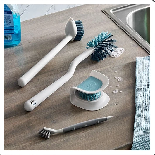 Kitchen Clean Up Made Easy When you need to clean your most-loved cooking tools, cookware, and kitchen, look no further than this Kitchen Cleaning Set! With this handy 4-piece set, you can clean everything from steak knives and pitchers to hand-wash-only cookware and small appliances. Product Details This set includes the following items: Dual-Sided Cleaning Brush Easy clean around the sink and drain, along the edge of your stove, and even small appliances (like the Deluxe Cooking Blender). Easy Clean Kitchen Brush The long handle lets you clean inside deep pots without getting your hands dirty, and the bristles can remove stubborn stuck-on foods. Easy Clean Bottle Brush Clean inside pitchers, bottles, and vases with this long-handled angled brush with soft and hard bristles. Utensil Scrubber Use it closed to clean knives and other sharp utensils, or flat or clean cookware and more.