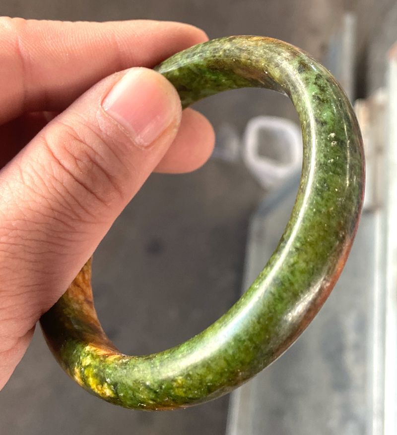 Peacock green rose peach blossom jade healing bangle bracelet 56-64mm