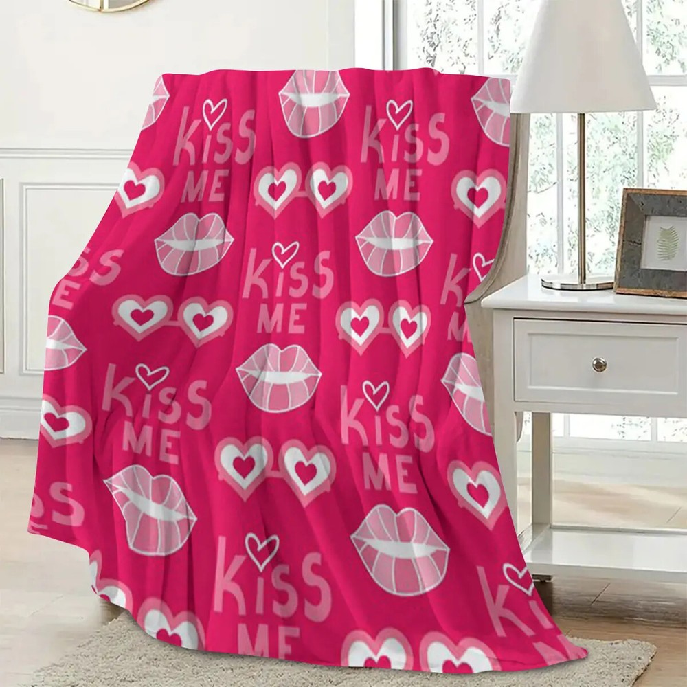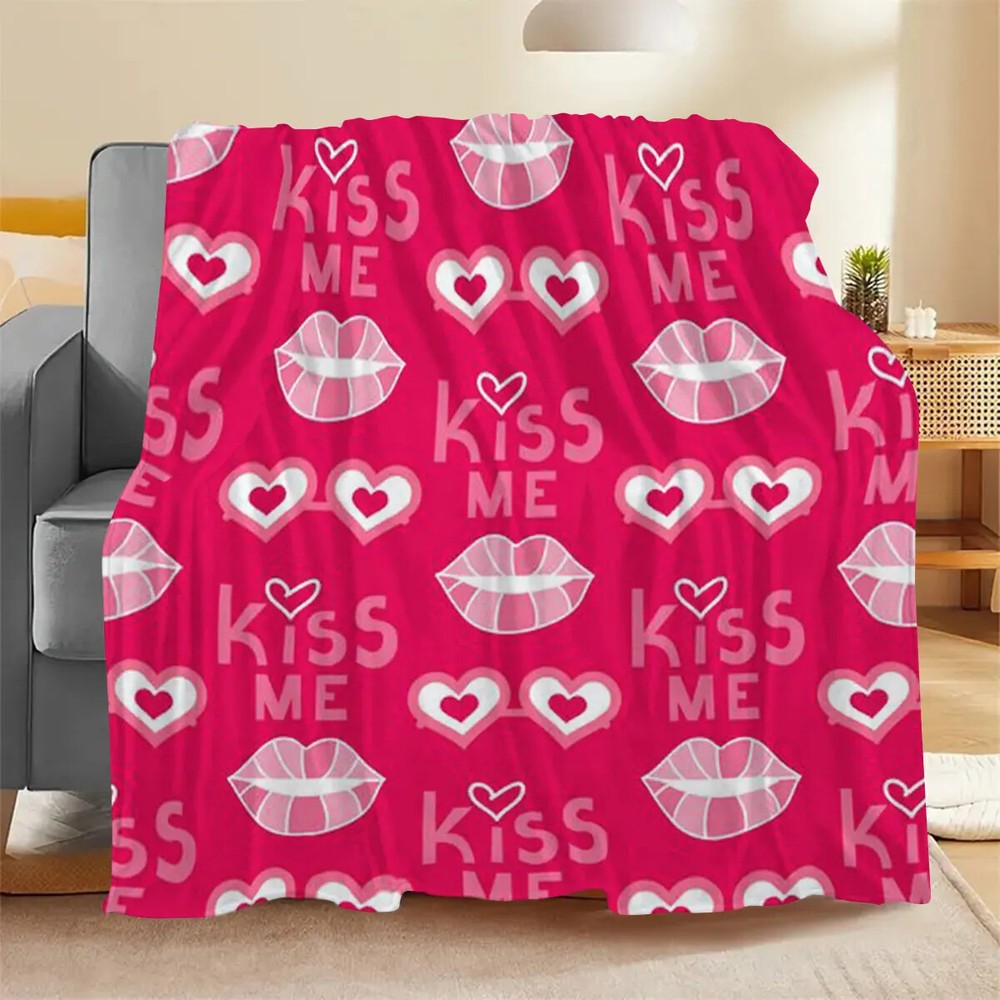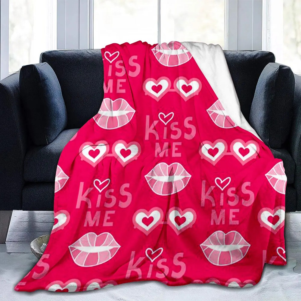 personalized Custom blanket printed Kiss Me Graphic Warm Soft Bedding