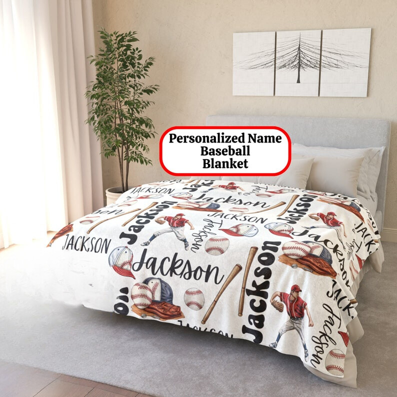 personalized Custom blanket printed Sporty Baseball Boy's name Warm Soft Bedding