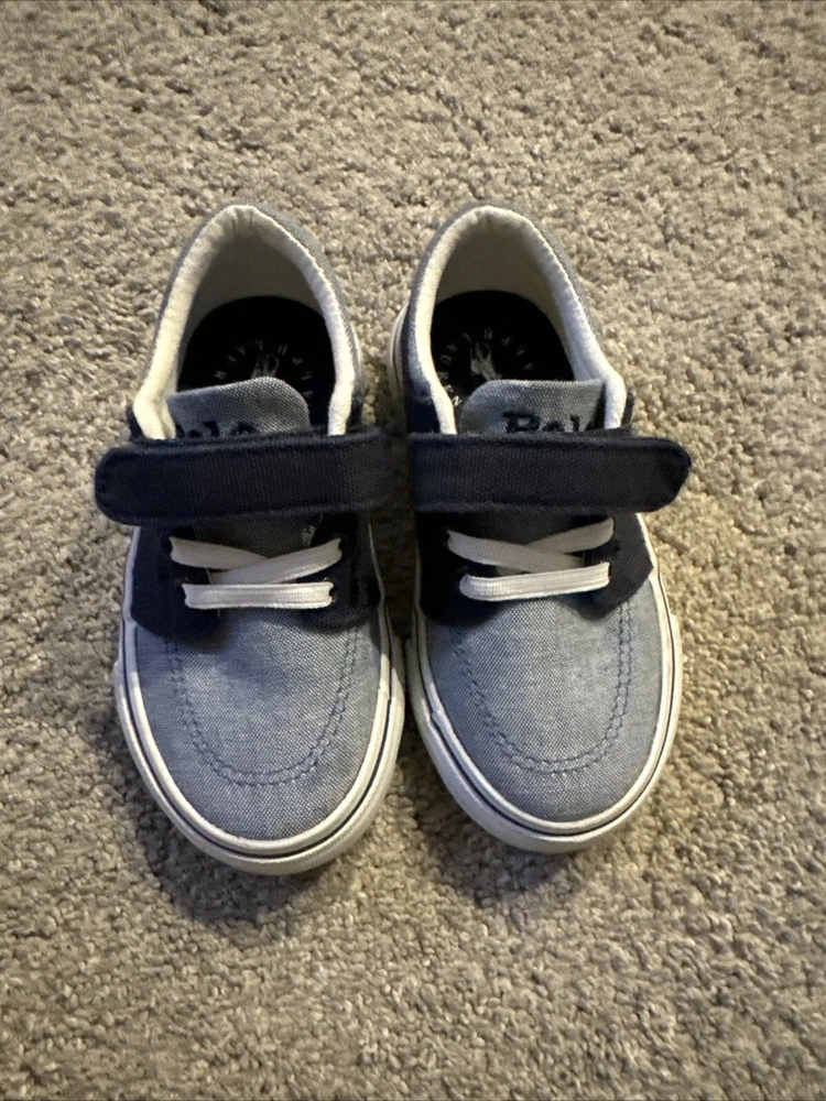 Looking for a stylish and comfortable pair of shoes for your little boy? Look no further than these Polo Ralph Lauren kids shoes in size 7. These shoes feature a lace-up and Velcro closure, making them easy to put on and take off, and perfect for any season - whether it's winter, summer, fall, or spring. The blue and gray color combination is both trendy and versatile, while the sneaker style ensures comfort and support. Ideal for boys who love to play and stay active, these shoes are a must-have addition to any wardrobe. So why wait? Order your pair today and step up your little one's shoe game!