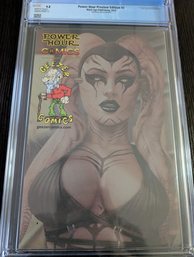 Rare 10 out of 20 Dive into the thrilling world of "Power Hour" with this exclusive 2nd edition, featuring the formidable Sith as the centerpiece of its narrative. The comic book comes in a sleek metal cover, exuding a sense of sophistication and durability that is sure to captivate collectors and fans alike. Published by Black Ops Publishing, this single issue comic is a standout piece from the Modern Age of comics, graded 9.8 Near Mint/Mint by the Certified Guaranty Company (CGC), assuring its premium quality. For enthusiasts of US Comics tradition, this edition is a must-have, representing a blend of intense storytelling and top-notch craftsmanship. With its 2023 publication year, "Power Hour" offers a fresh take on the genre, appealing to both avid collectors and new readers looking to experience the excitement of a meticulously preserved comic book. Embrace the dark side with this Sith Bound Metal Cover Edition and add a shining gem to your collection today. All sales final super rare only one up for sell right now only 20 of these rare comics number # 10 only metal topless one up for sell