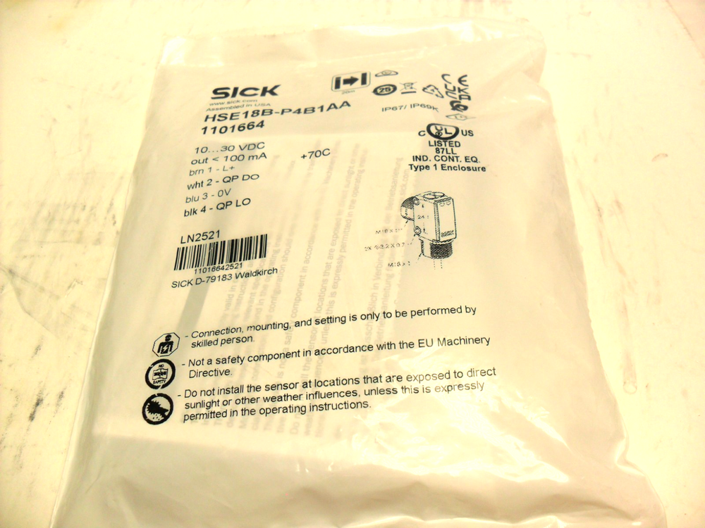 bn-8B-102-LL qty 2 - SICK - 110494 - HSE18B-P4B1BA I opened the main to make sure there were two inside there are and they are in Fcacory Sealed Bagsbag Factory Sealed Bags Shipping USA Our Business/Industrial items are inventory overstocks from a local automation/manufacturing company. All used items were totally functioning when pulled and most do not have the original box. New items listed have never been installed and will be shipped in the original manufacturer's box.