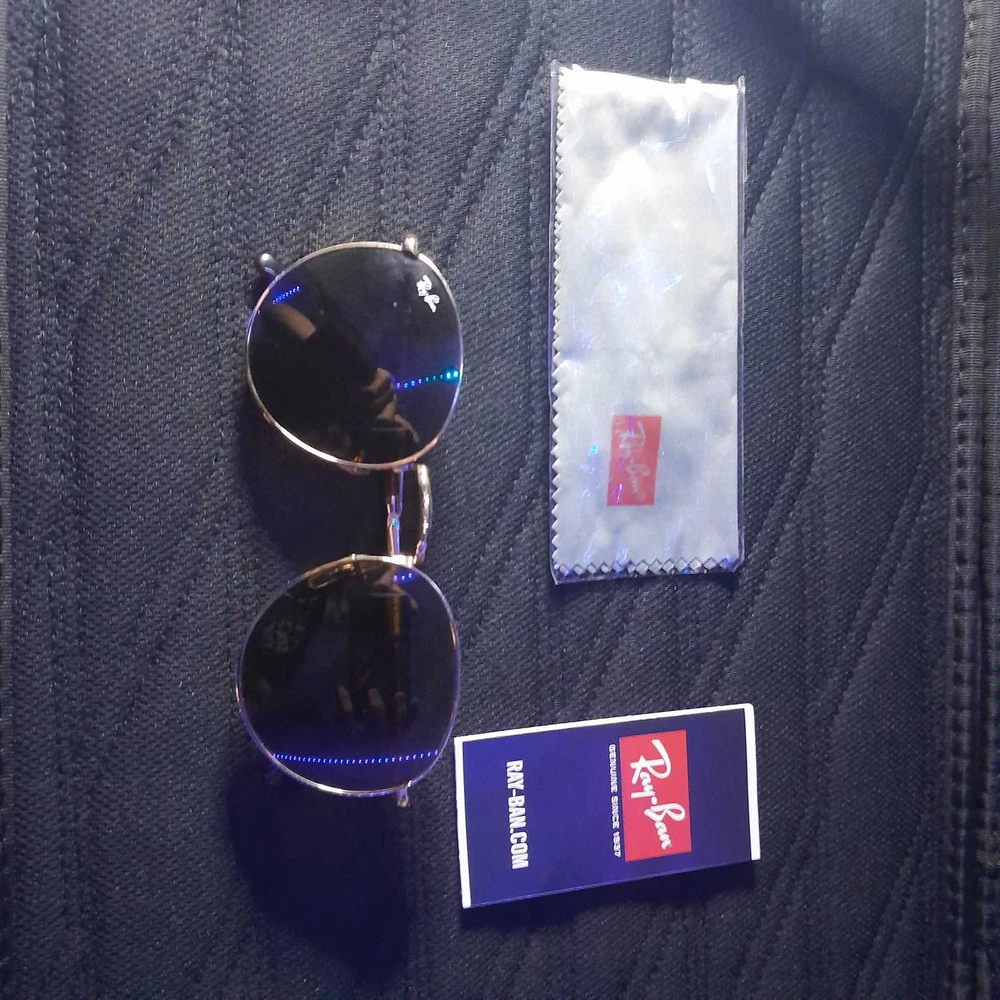 The product is a pair of Ray-Ban sunglasses with a gold frame and brown lenses. They are designed for both men and women and are categorized as a stylish, They are brand new with a high quality leather case, cleaning cloth, and
