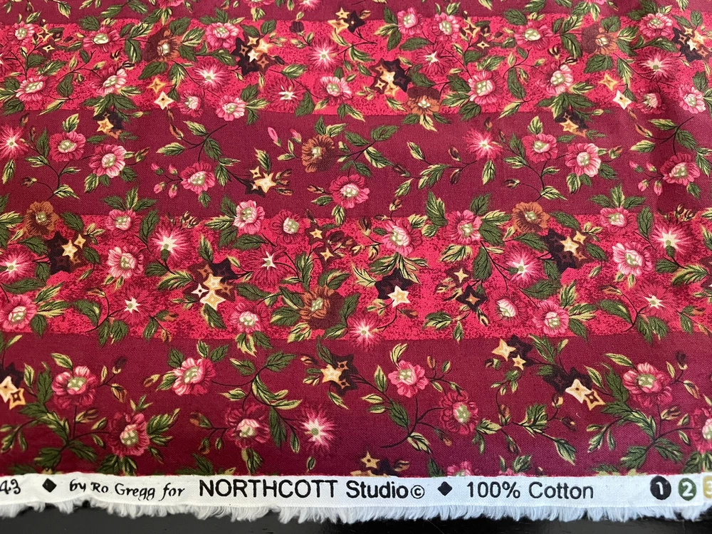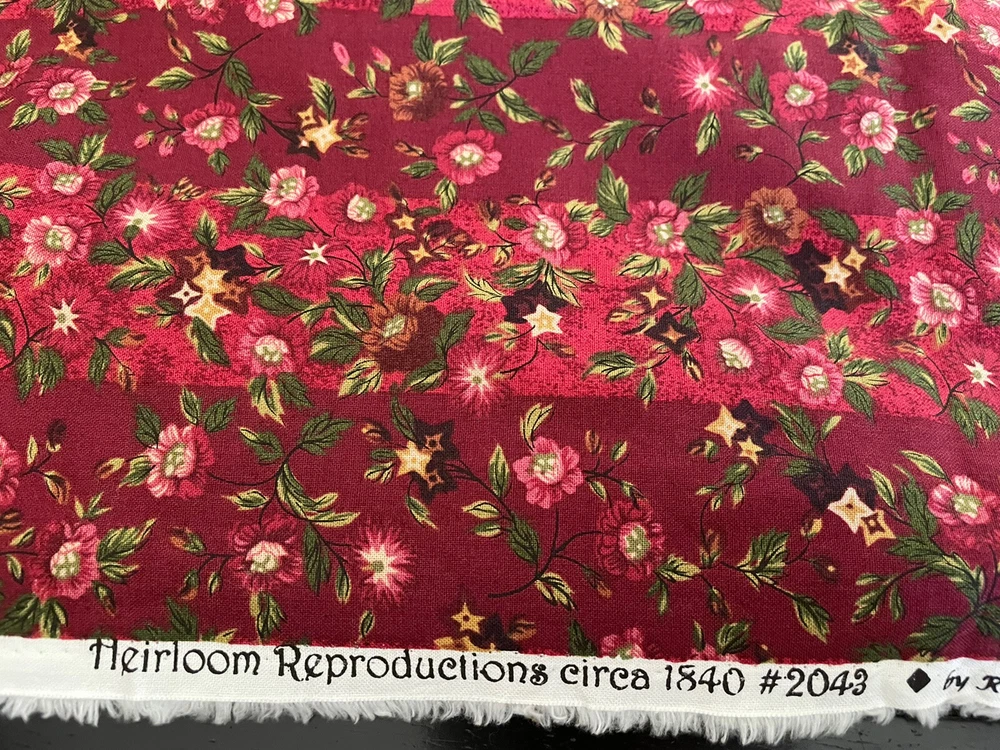 red striped floral heirloom reproductions circa 1840 ro gregg Northcott 2.5 yards. Comes as a little over 2.5 yards; 96”. Has a bit of a musty odor.