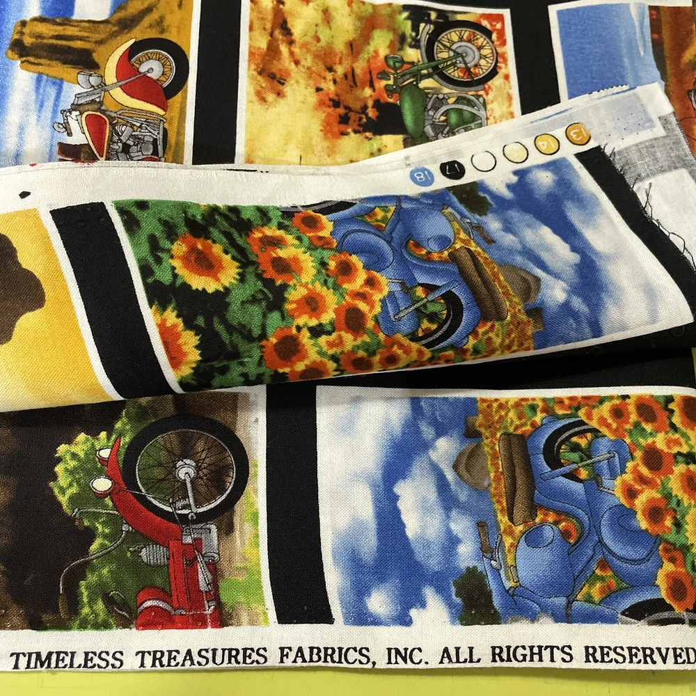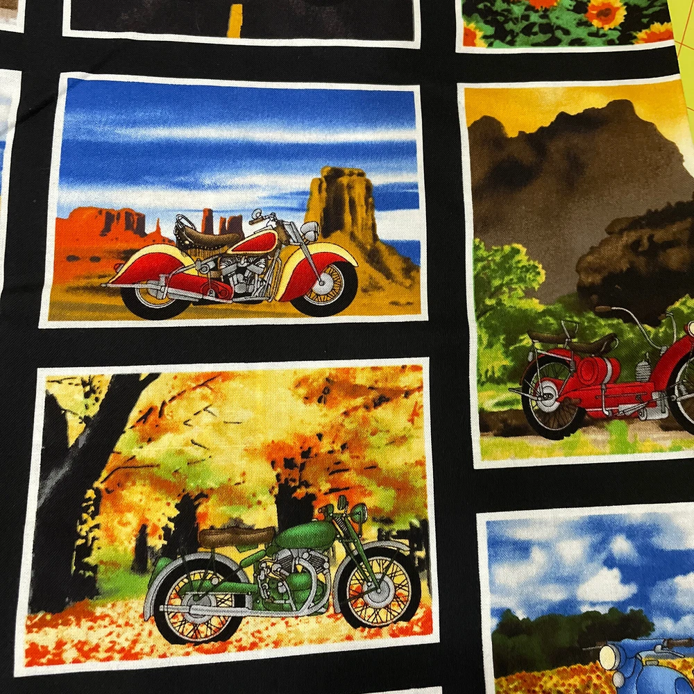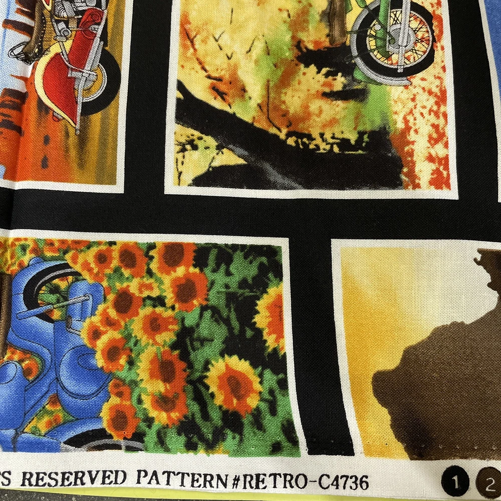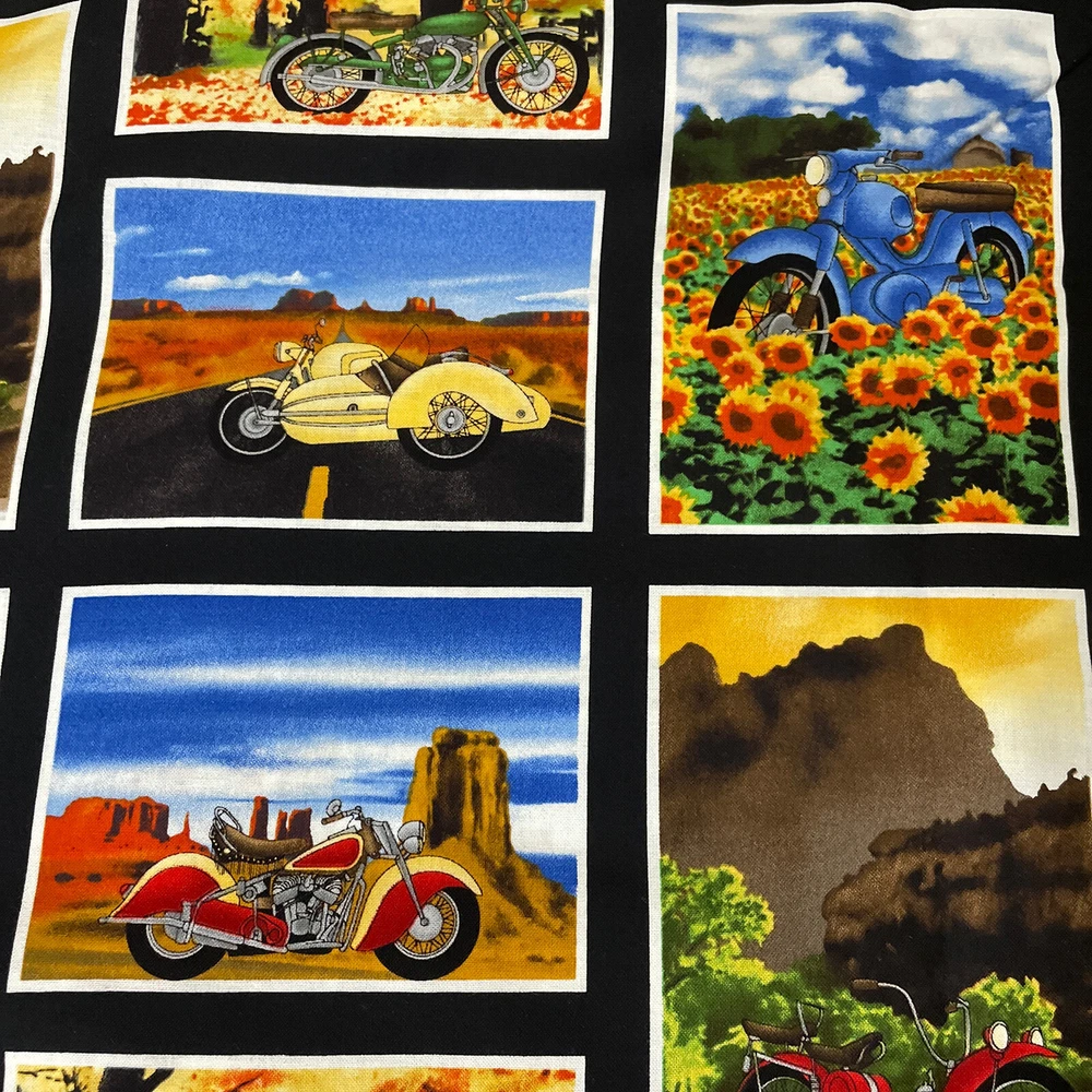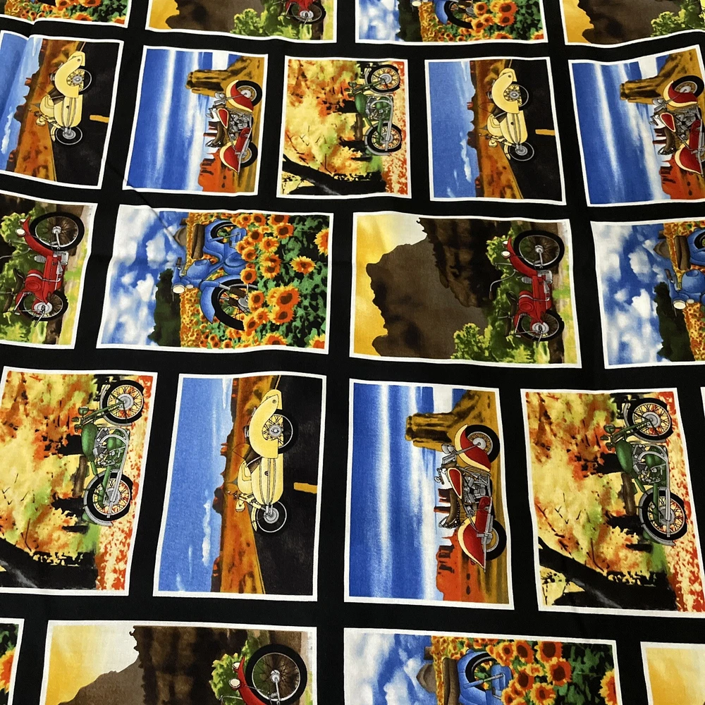 retro motorcycles bikes desert mini panel timeless treasures 1 yard. Comes as a little over a yard; 42”. Contains about 56 mini panels.