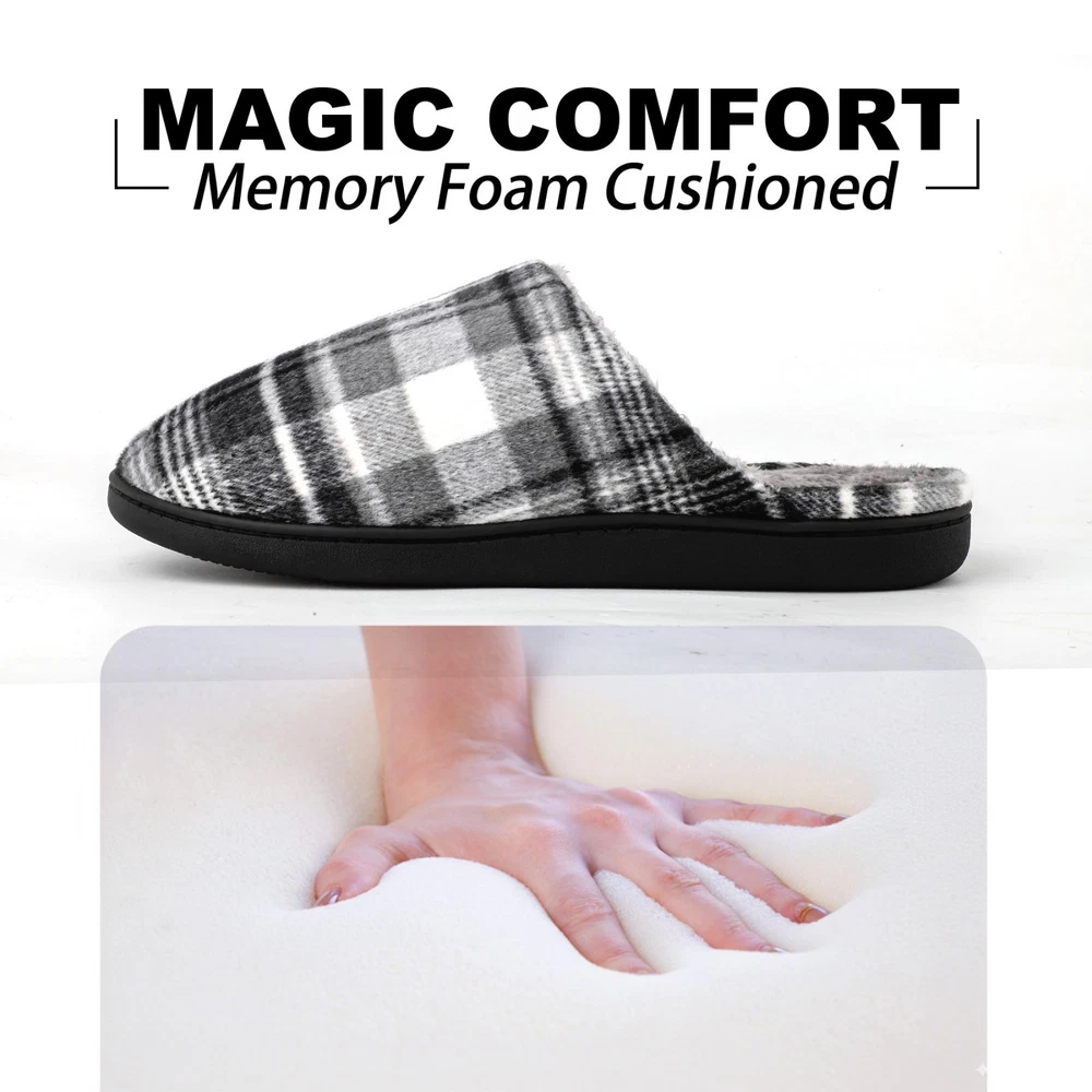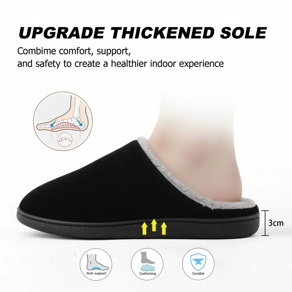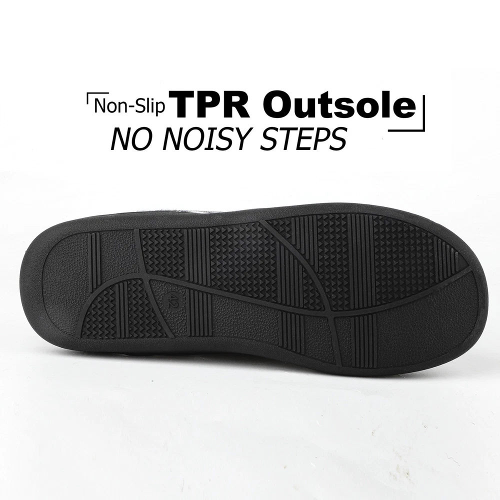 riemot Mens Memory Foam Indoor Bedroom Slippers Winter Warm Fluffy House Shoes The riemot Men's Memory Foam Indoor Bedroom Slippers are designed for ultimate comfort and warmth during the colder seasons. Featuring a closed toe and slip-on closure, these fluffy house shoes are lined with faux fur and filled with memory foam for a cozy feel. The rubber outsole provides traction, making them suitable for indoor wear. With a flat heel height and lightweight design, these slippers are perfect for lounging around the house in style and comfort. Ideal for winter, fall, and spring, these slip-ons are a must-have addition to any man's shoe collection. ๐๐ฅ๐ญ๐ข๐ฆ๐๐ญ๐ ๐๐จ๐ฆ๐๐จ๐ซ๐ญ ๐ฐ๐ข๐ญ๐ก ๐๐๐ฆ๐จ๐ซ๐ฒ ๐ ๐จ๐๐ฆ: Experience cloud-like support in these memory foam house shoes, featuring a responsive midsole that molds to your feet, reducing pressure points for all-day wear as mens home slippers. ๐๐ฅ๐ฎ๐ฌ๐ก ๐๐๐ซ๐ฆ๐ญ๐ก ๐๐จ๐ซ ๐๐จ๐ฅ๐ ๐๐๐ฒ๐ฌ: Soft furry lining traps heat to keep feet toasty in winter, ideal as mens bedroom slippers for relaxing by the fireplace or early morning routines. ๐๐ข๐ ๐ก๐ญ๐ฐ๐๐ข๐ ๐ก๐ญ & ๐๐ฎ๐ฌ๐ก๐ข๐จ๐ง๐๐ ๐๐ฎ๐ฉ๐ฉ๐จ๐ซ๐ญ: Weighing only 0.85 lbs per pair, these man house shoes combine a thick cushioned sole and breathable upper cloth for effortless comfort without bulk. ๐๐ฎ๐ซ๐๐๐ฅ๐ & ๐๐จ๐ง-๐๐ฅ๐ข๐ฉ ๐๐๐ฌ๐ข๐ ๐ง ๐๐จ๐ซ ๐๐ง๐๐จ๐จ๐ซ/๐๐ฎ๐ญ๐๐จ๐จ๐ซ ๐๐ฅ๐ข๐ฉ๐ฉ๐๐ซ๐ฌ: The upgrade thicken TPR sole with deep treads ensures safety on tiles, wood, or pavement, making these indoor outdoor slippers for men perfect for quick trips to the mailbox or cozy nights at home. Reinforced stitching and high-quality materials ensure longevity, whether worn as house slippers for men during chores or daily lounging. These menโs slippers are machine washable. ๐๐ก๐จ๐ฎ๐ ๐ก๐ญ๐๐ฎ๐ฅ ๐๐ข๐๐ญ-๐๐๐๐๐ฒ ๐๐๐๐ค๐๐ ๐ข๐ง๐ : Presented in an elegant box, these mens home slippers are a prime gift for dads, husbands, or friends on birthdays, Christmas, or Fatherโs Day.