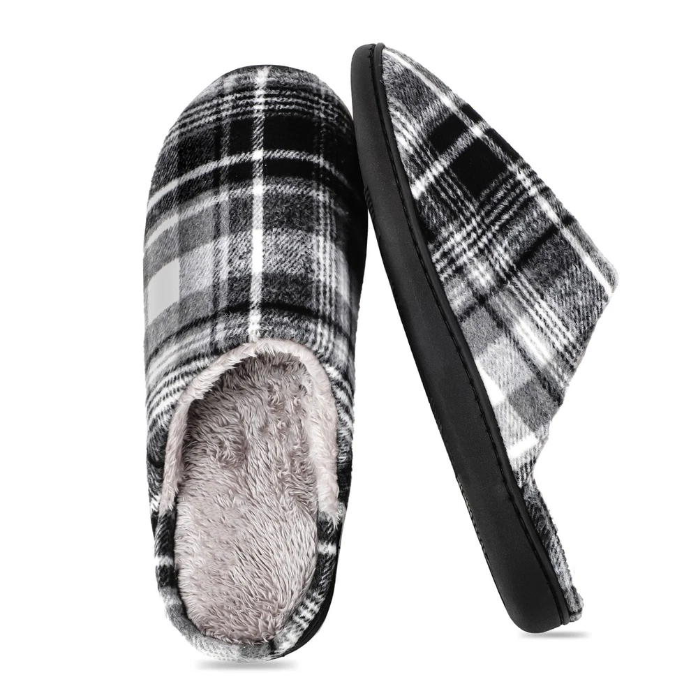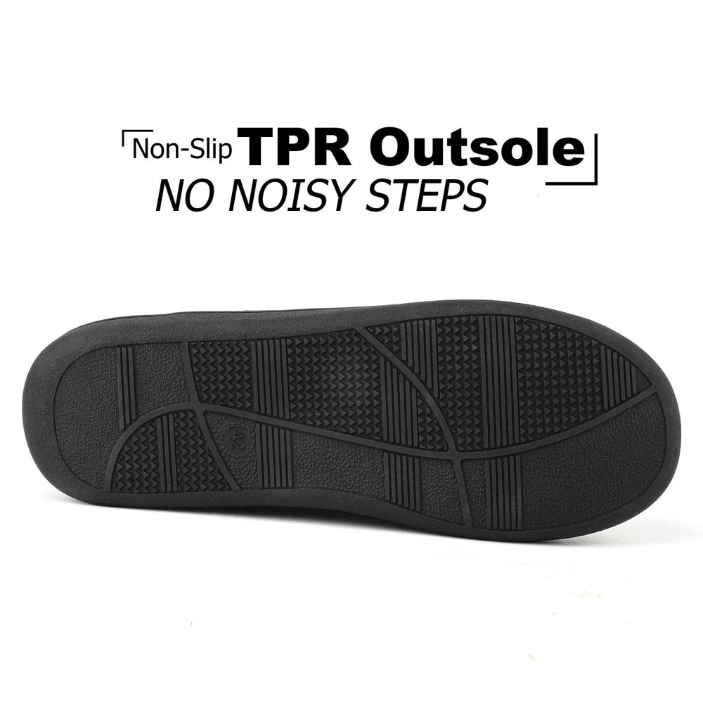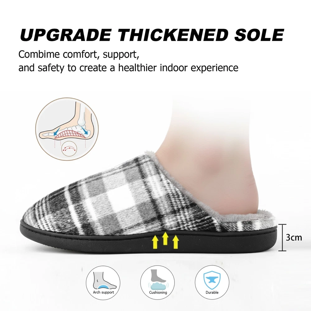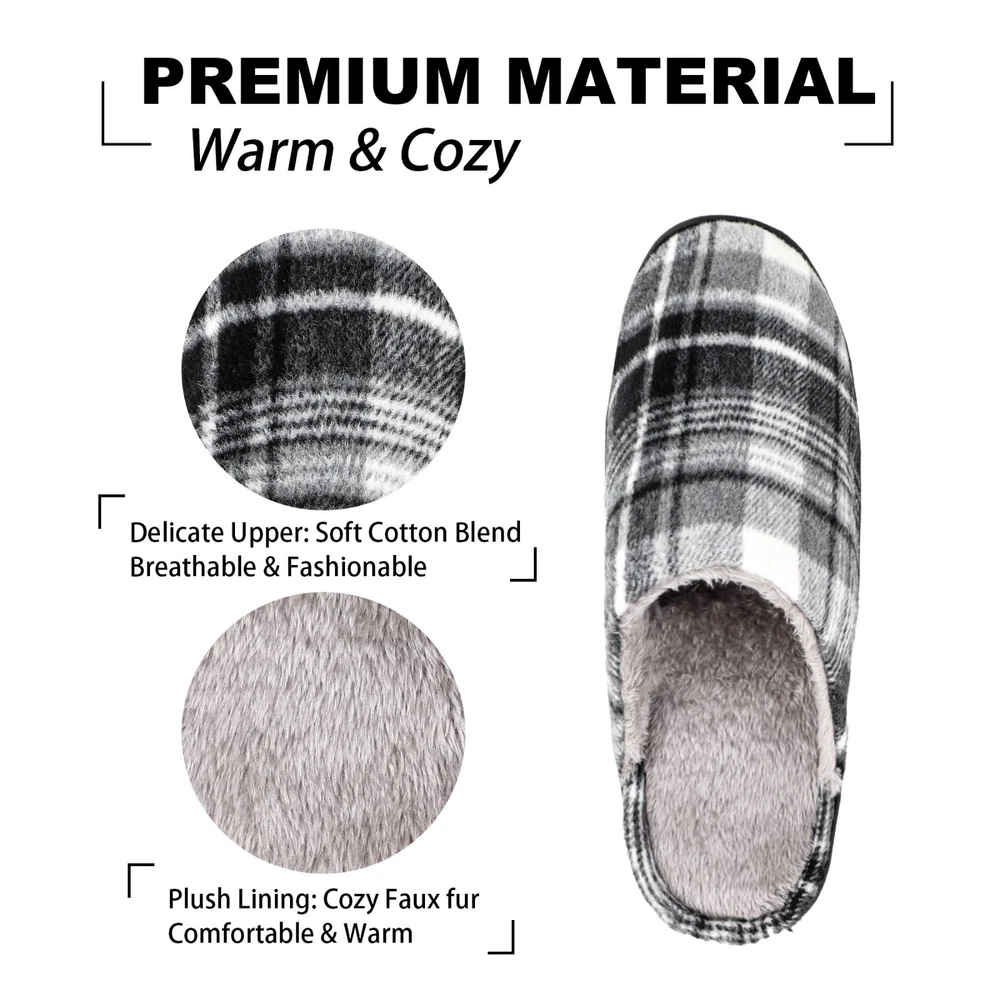 riemot Mens Memory Foam Indoor Bedroom Slippers Winter Warm Fluffy House Shoes The riemot Men's Memory Foam Indoor Bedroom Slippers are designed for ultimate comfort and warmth during the colder seasons. Featuring a closed toe and slip-on closure, these fluffy house shoes are lined with faux fur and filled with memory foam for a cozy feel. The rubber outsole provides traction, making them suitable for indoor wear. With a flat heel height and lightweight design, these slippers are perfect for lounging around the house in style and comfort. Ideal for winter, fall, and spring, these slip-ons are a must-have addition to any man's shoe collection. ๐๐ฅ๐ญ๐ข๐ฆ๐๐ญ๐ ๐๐จ๐ฆ๐๐จ๐ซ๐ญ ๐ฐ๐ข๐ญ๐ก ๐๐๐ฆ๐จ๐ซ๐ฒ ๐ ๐จ๐๐ฆ: Experience cloud-like support in these memory foam house shoes, featuring a responsive midsole that molds to your feet, reducing pressure points for all-day wear as mens home slippers. ๐๐ฅ๐ฎ๐ฌ๐ก ๐๐๐ซ๐ฆ๐ญ๐ก ๐๐จ๐ซ ๐๐จ๐ฅ๐ ๐๐๐ฒ๐ฌ: Soft furry lining traps heat to keep feet toasty in winter, ideal as mens bedroom slippers for relaxing by the fireplace or early morning routines. ๐๐ข๐ ๐ก๐ญ๐ฐ๐๐ข๐ ๐ก๐ญ & ๐๐ฎ๐ฌ๐ก๐ข๐จ๐ง๐๐ ๐๐ฎ๐ฉ๐ฉ๐จ๐ซ๐ญ: Weighing only 0.85 lbs per pair, these man house shoes combine a thick cushioned sole and breathable upper cloth for effortless comfort without bulk. ๐๐ฎ๐ซ๐๐๐ฅ๐ & ๐๐จ๐ง-๐๐ฅ๐ข๐ฉ ๐๐๐ฌ๐ข๐ ๐ง ๐๐จ๐ซ ๐๐ง๐๐จ๐จ๐ซ/๐๐ฎ๐ญ๐๐จ๐จ๐ซ ๐๐ฅ๐ข๐ฉ๐ฉ๐๐ซ๐ฌ: The upgrade thicken TPR sole with deep treads ensures safety on tiles, wood, or pavement, making these indoor outdoor slippers for men perfect for quick trips to the mailbox or cozy nights at home. Reinforced stitching and high-quality materials ensure longevity, whether worn as house slippers for men during chores or daily lounging. These menโs slippers are machine washable. ๐๐ก๐จ๐ฎ๐ ๐ก๐ญ๐๐ฎ๐ฅ ๐๐ข๐๐ญ-๐๐๐๐๐ฒ ๐๐๐๐ค๐๐ ๐ข๐ง๐ : Presented in an elegant box, these mens home slippers are a prime gift for dads, husbands, or friends on birthdays, Christmas, or Fatherโs Day.
