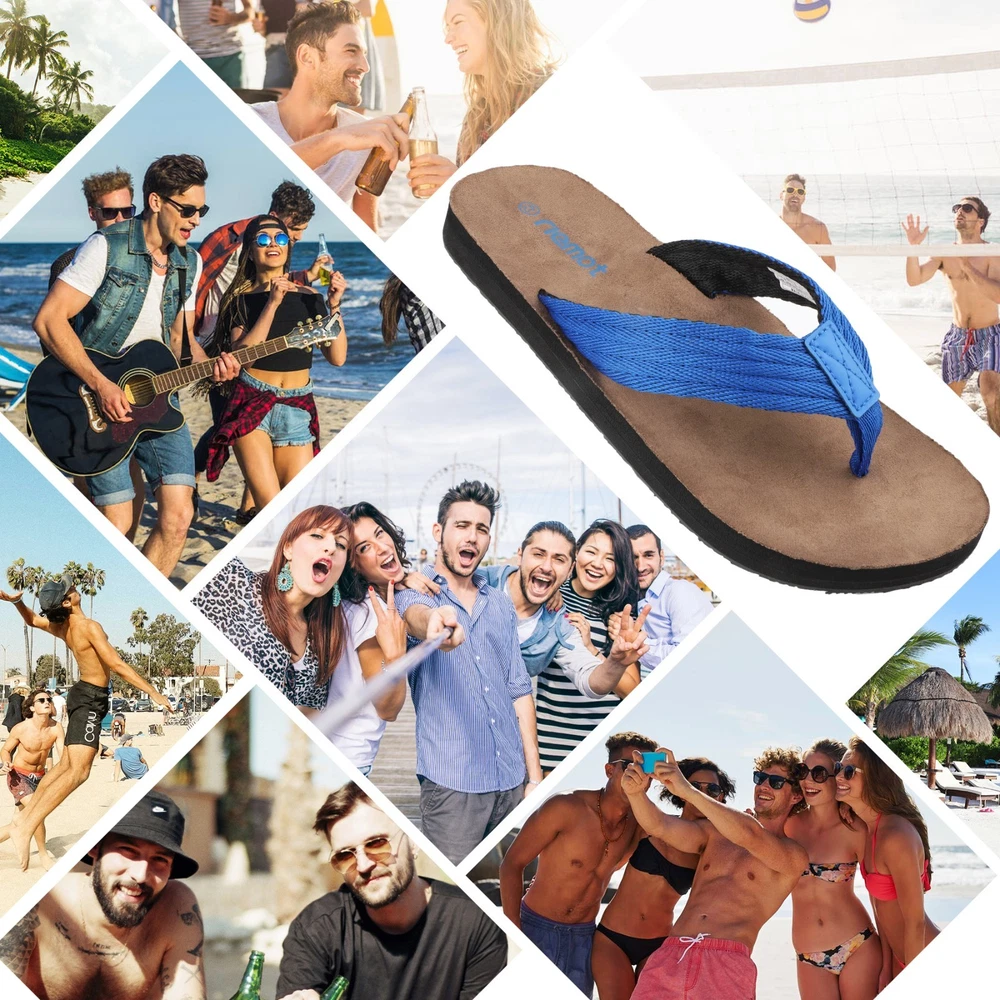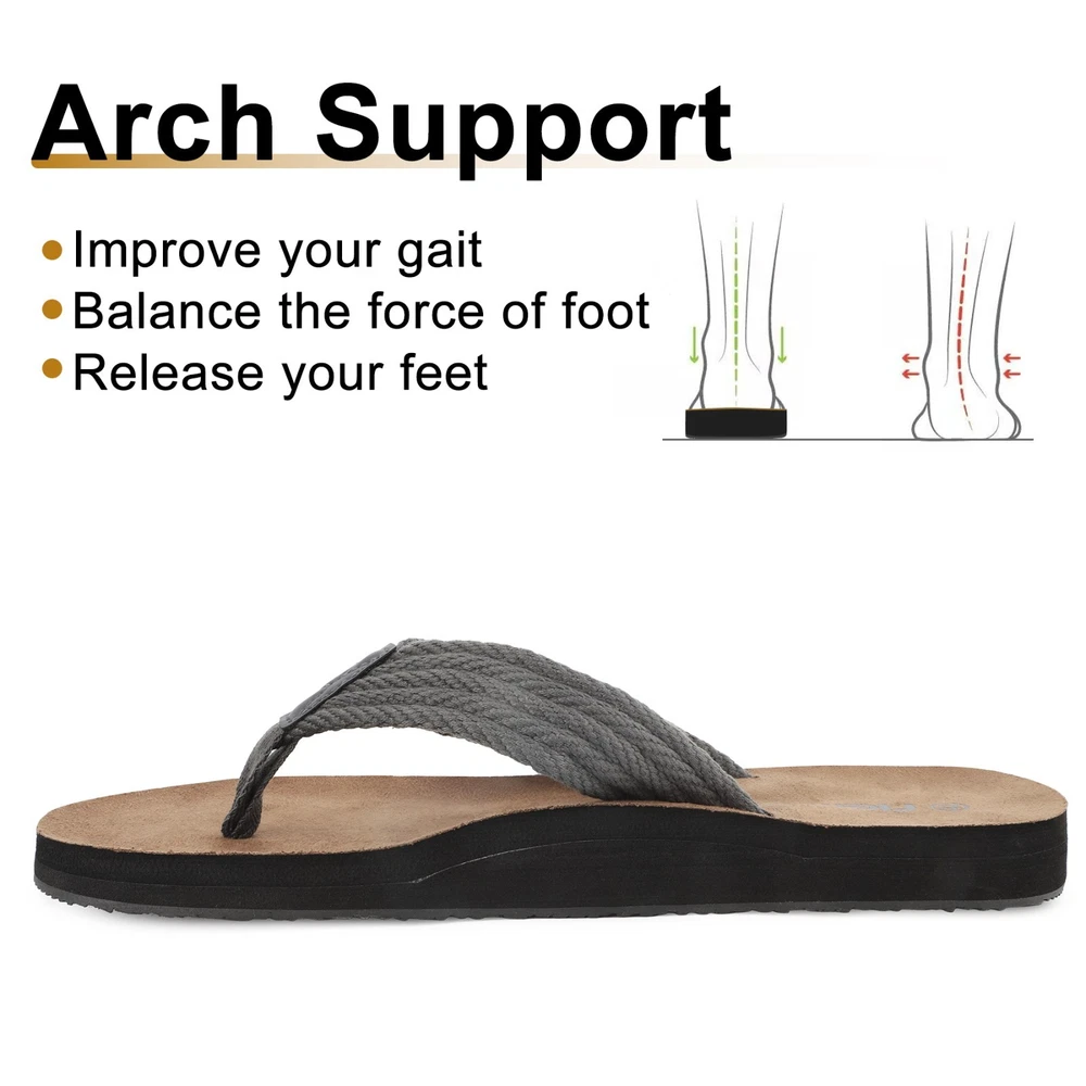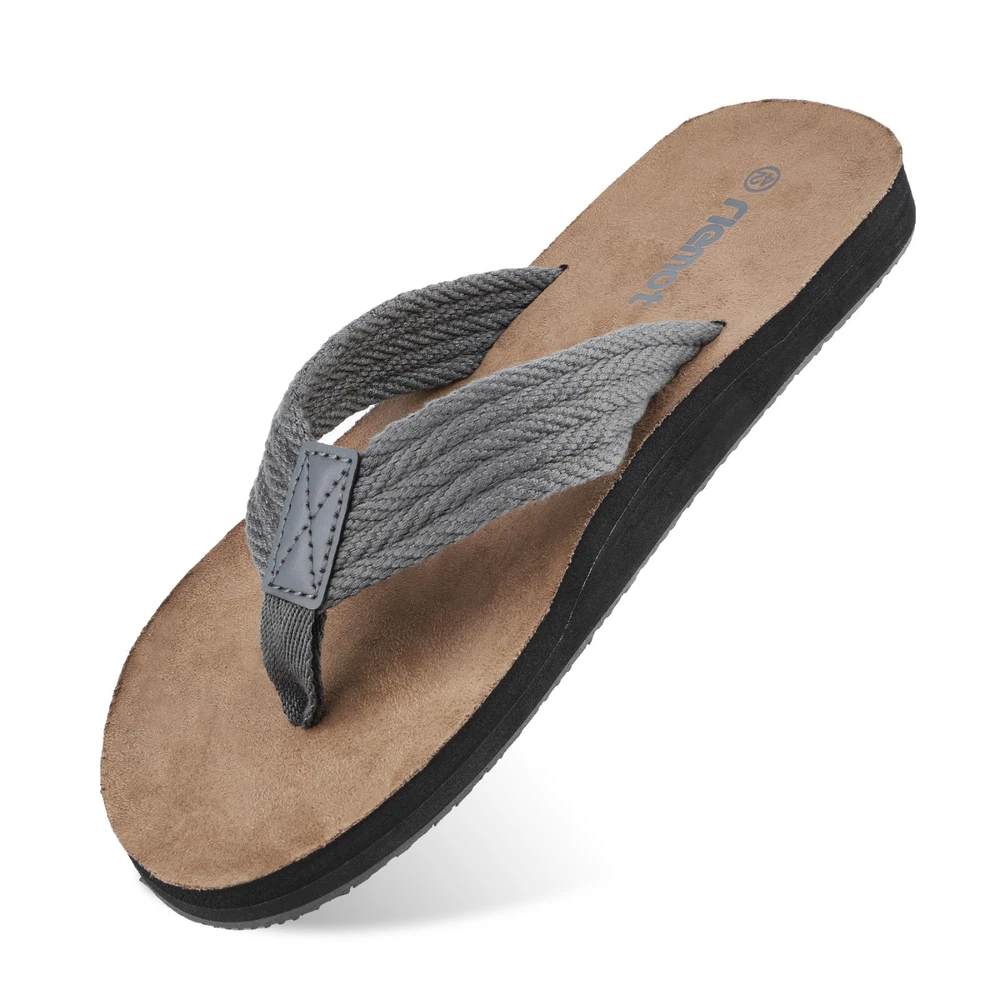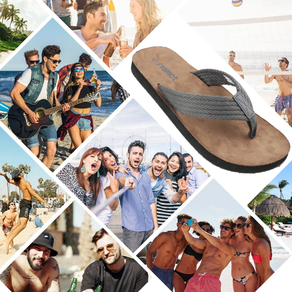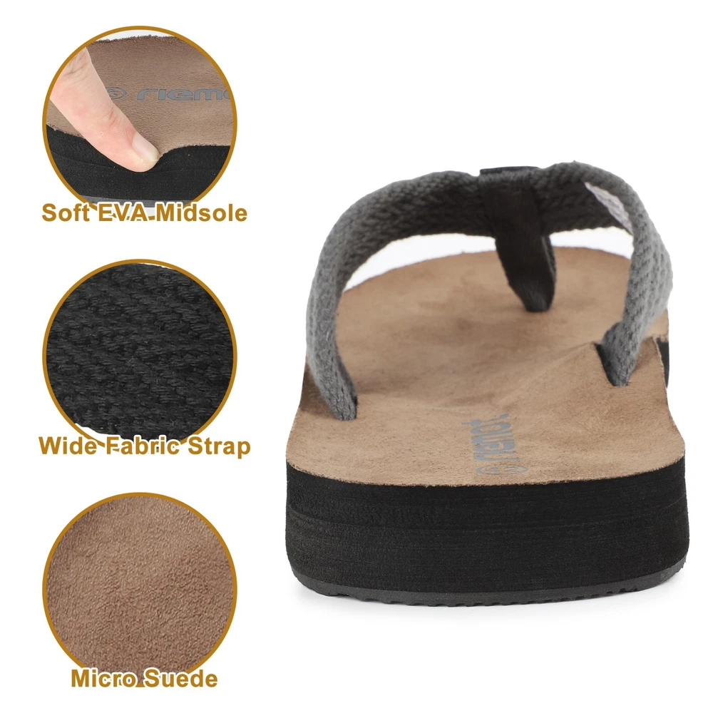 riemot Men's Thongs Arch Support Flip Flops Beach Sandals Lightweight Comfort Thongs The riemot Men's Thongs Arch Support Flip Flops are lightweight and comfortable sandals perfect for casual occasions. Featuring a slip-on closure and solid pattern, these sandals have a rubber outsole for non-slip performance. The synthetic upper and lining materials ensure durability and breathability, while the cushioned insole provides extra comfort. With arch support and a lightweight design, these thongs are ideal for outdoor activities during the summer, fall, or spring seasons. The riemot brand logo adds a stylish touch to these versatile beach sandals. SUPPORT&DURABILITY:riemot mens flip flops are sturdily constructed and breathable. The soft suede insole and arch support make this sandals men very comfortable. This flip flop slippers is designed to provide all-day support and cushioning with every step PREMIUM&EXCELLENT TRACTION:Premium TPR soles add to the durability of the flip-flops, and the slip-resistant rubber soles with a pronounced tread pattern provide excellent traction and stability on a variety of surfaces and terrains COMFORTABLE CANVAS STRAP: Optimised soft canvas strap provide a comfortable feel against your skin. We've optimised the toe area of the flip-flops to provide more room for your toes and ensure they are wide enough. Wear them whenever you want your feet to relax MADE FOR YOU: The classic flip flop sandals are spacious and comfortable and fit your feet firmly, giving you endless fun both indoors and outdoors. Suitable for spring, summer and autumn, especially for summer EASY CARE & VERSATILE: riemot 3 Point Flip Flops are ideal for everyday casual slippers, beach slippers, pool slippers and indoor and outdoor sandals. They are also easy to clean. Rinsing the flip flops with fresh water after travelling will make them more durable