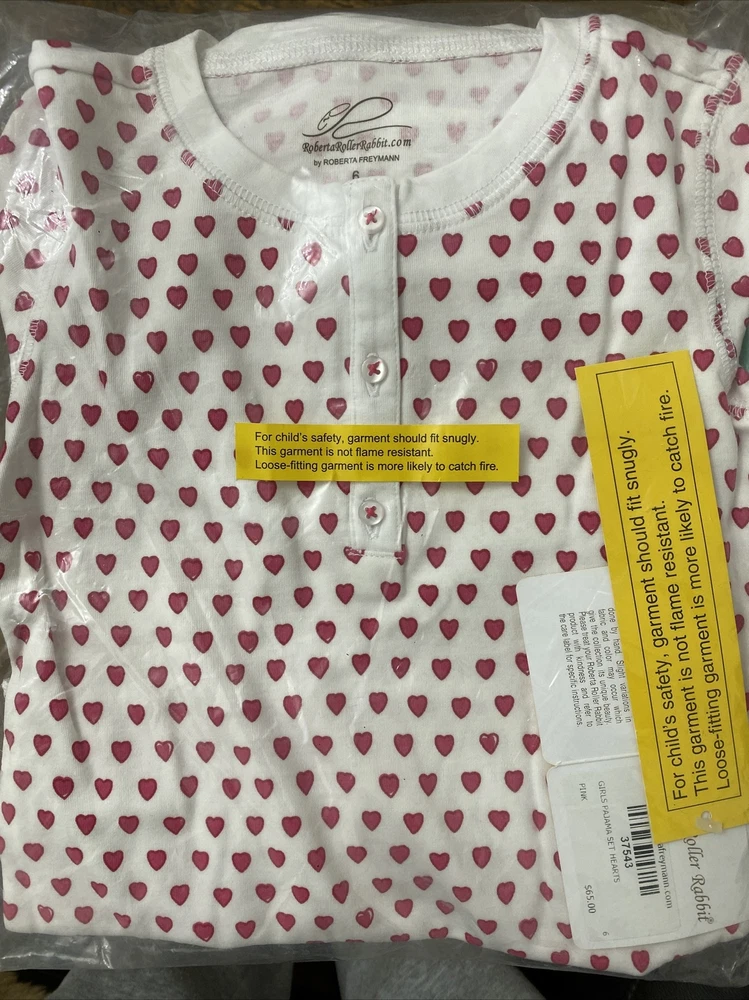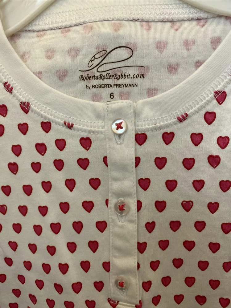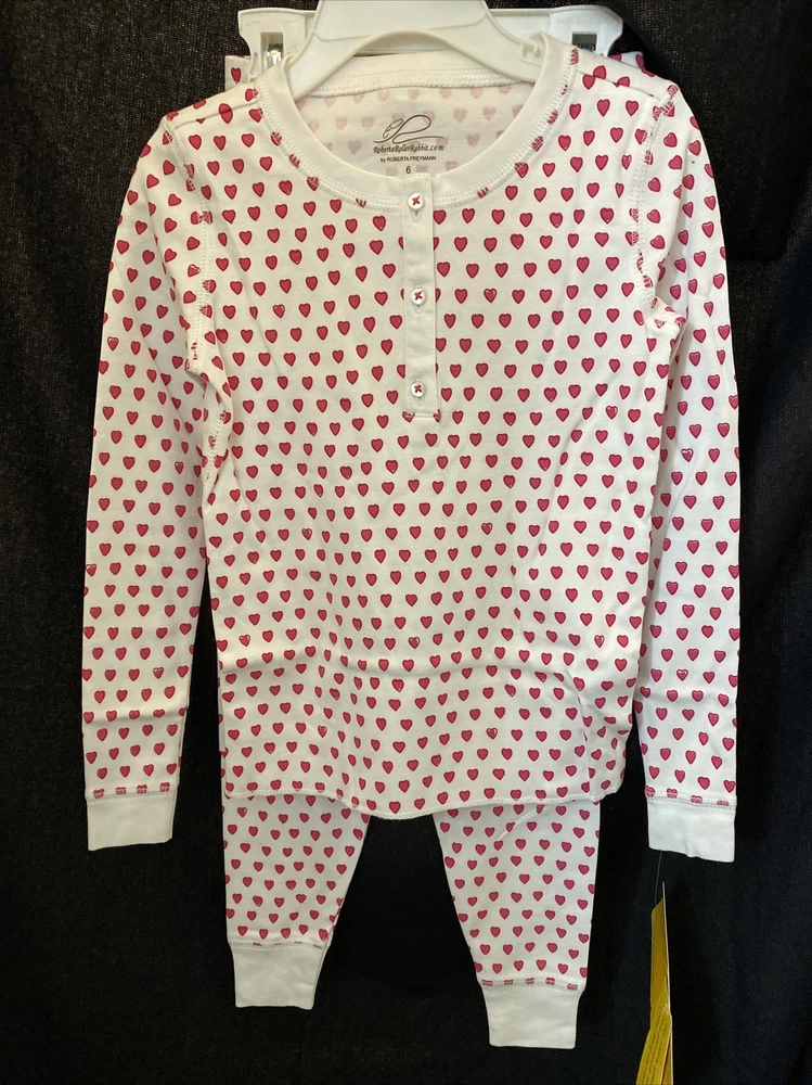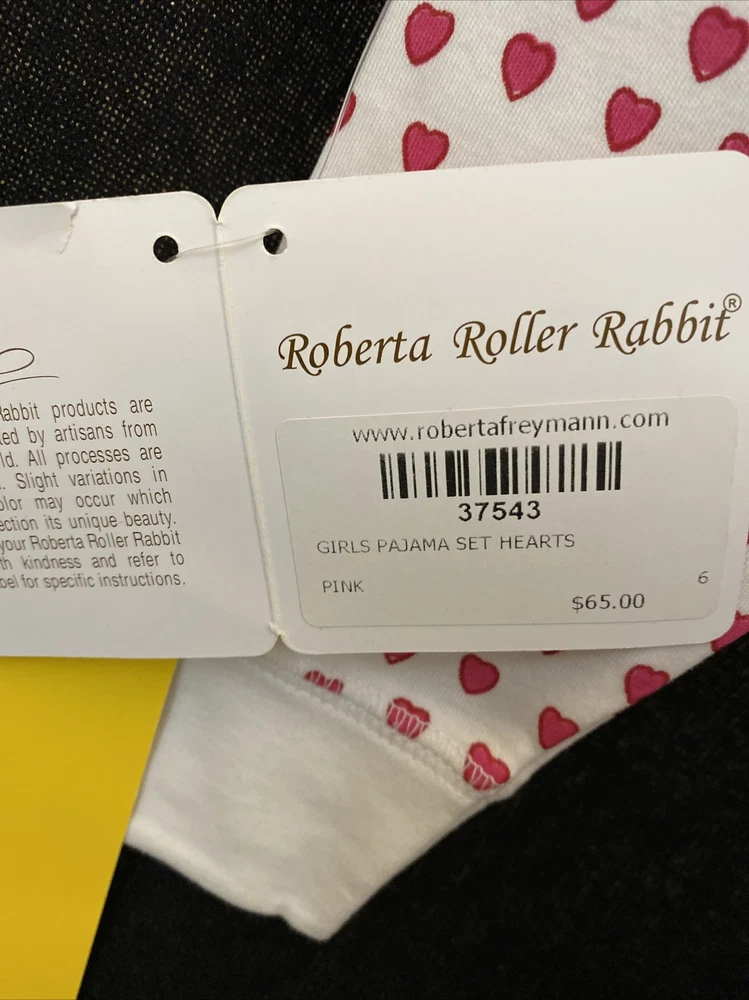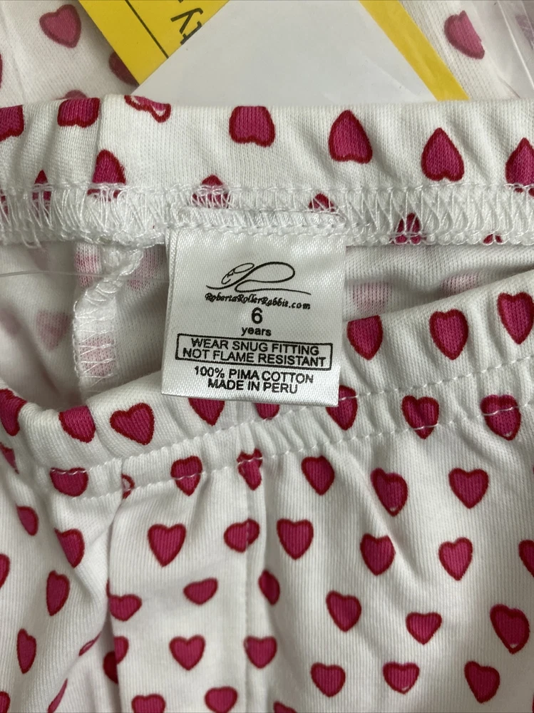 roberta roller rabbit girls pajama set pink heart Sz 6 NWT