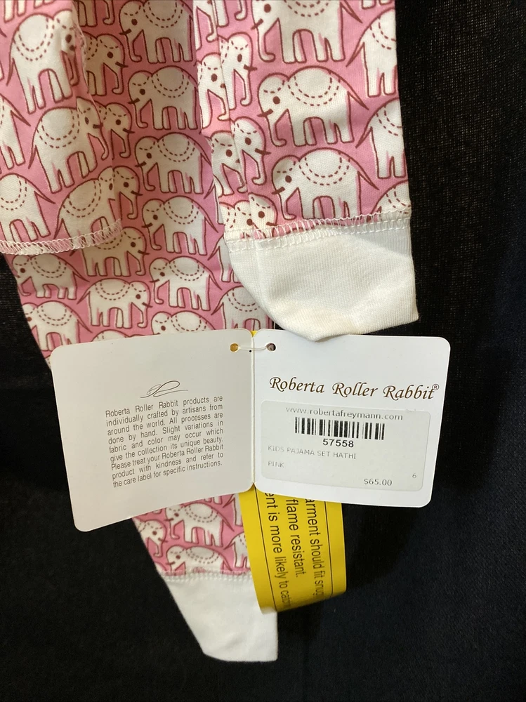 roberta roller rabbit kids pajama set Hathi pink sz 6 NWT. But it’s smaller , better for sz4