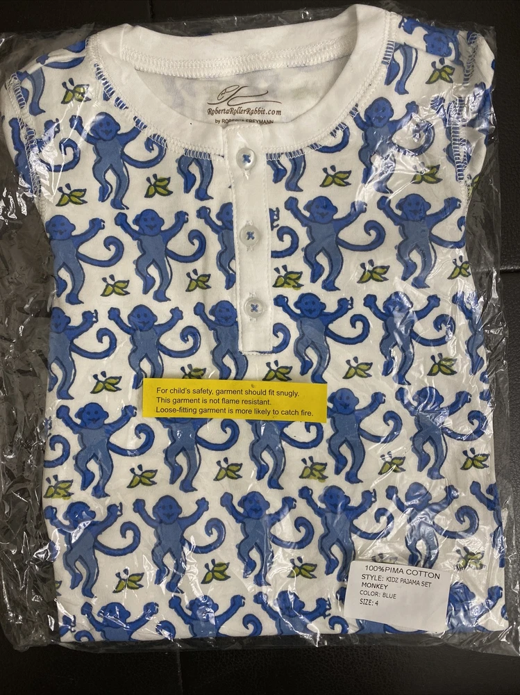 roberta roller rabbit kids pajama set monkey blue 4years. But it’s smaller, better for sz 2