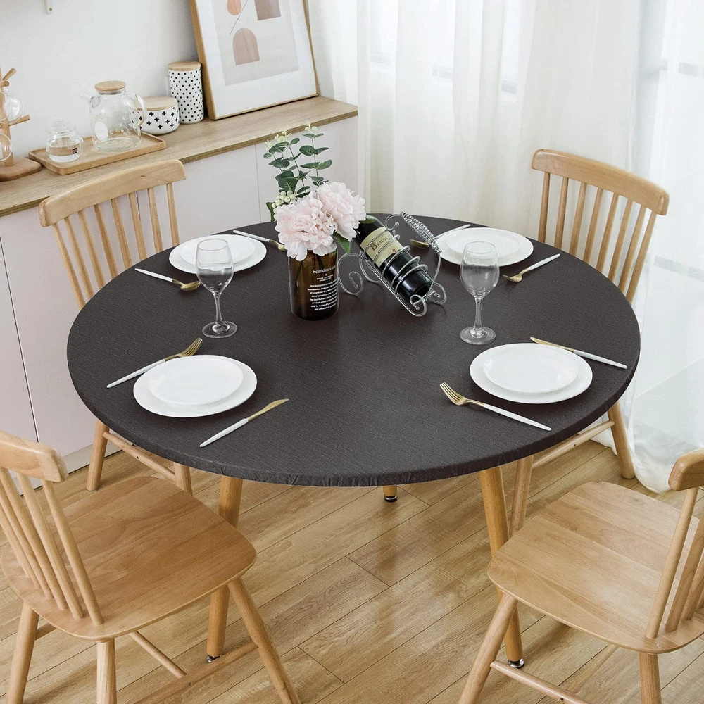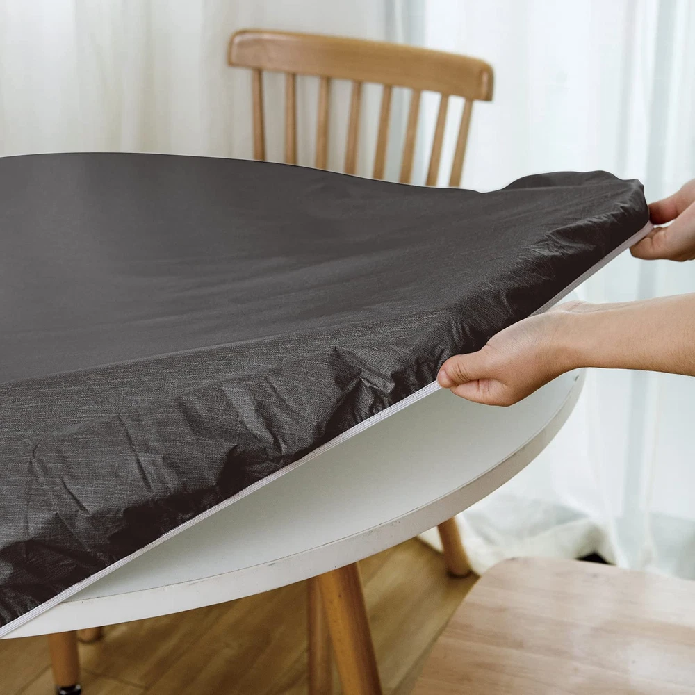 round Fitted Vinyl Tablecloth with Elastic Edge 100% Waterproof Oil Proof PVC Ta