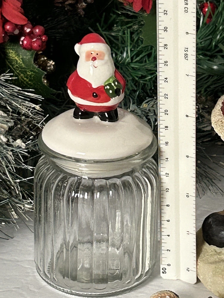 Lot includes large Santa, Santa jar, Santa magnet and adorable small Santa in a sleigh. Good condition