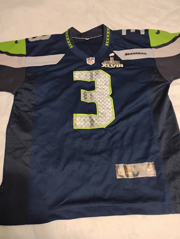 Show your support for the Seattle Seahawks with this Super Bowl jersey. Perfect for any fan of the National Football League (NFL) and football, this jersey is a must-have for any collector. Represent your team with pride and wear this jersey during the Super Bowl or any other special occasion. The size of this jersey is medium and it is made of high-quality materials to ensure durability and comfort. It features the team's colors and logo, making it a great addition to any fan's collection. Get this jersey now and show your love for the Seattle Seahawks!