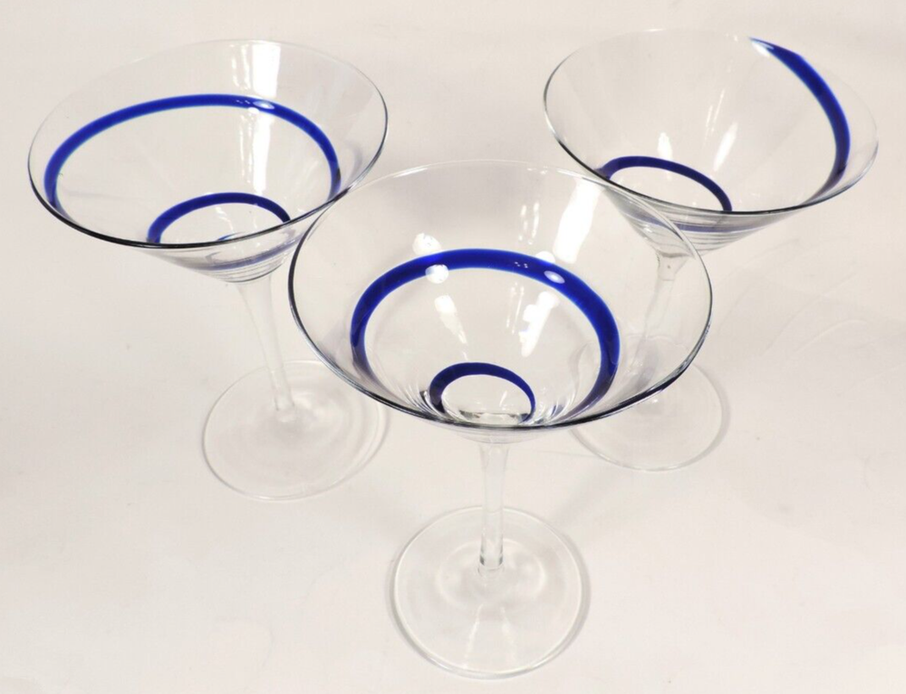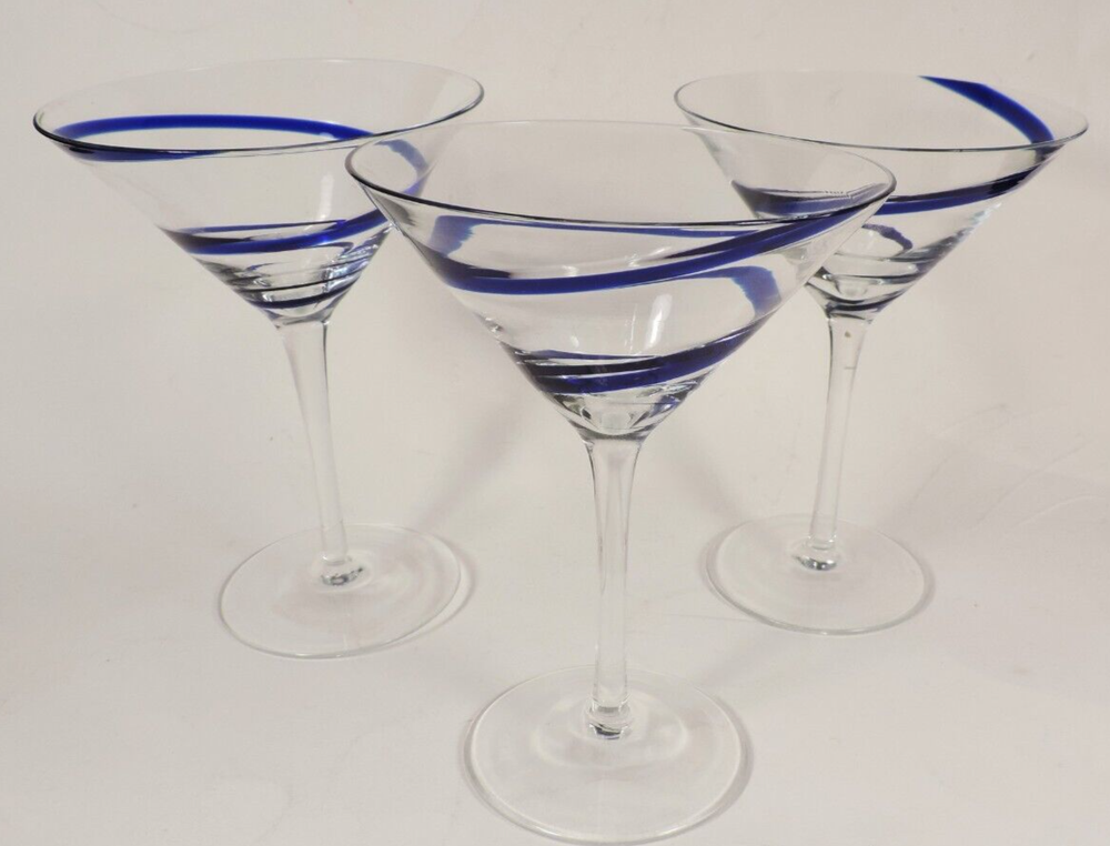 BRAND: PIER 1 (ONE) ITEM: MARTINI GLASSES NUMBER IN SET: 3 SIZE: 7" TALL CONDITION: AS NEW PATTERN: SWIRLINE MATERIAL: HAND BLOWN GLASS SHIPPING: WEIGHT WILL BE 4 LBS (NOTE THAT I OFFER SHIPPING OPTIONS UNDER PAYMENT & SHIPPING TAB, SELECTION MAY BE MADE UPON CHECKOU T)