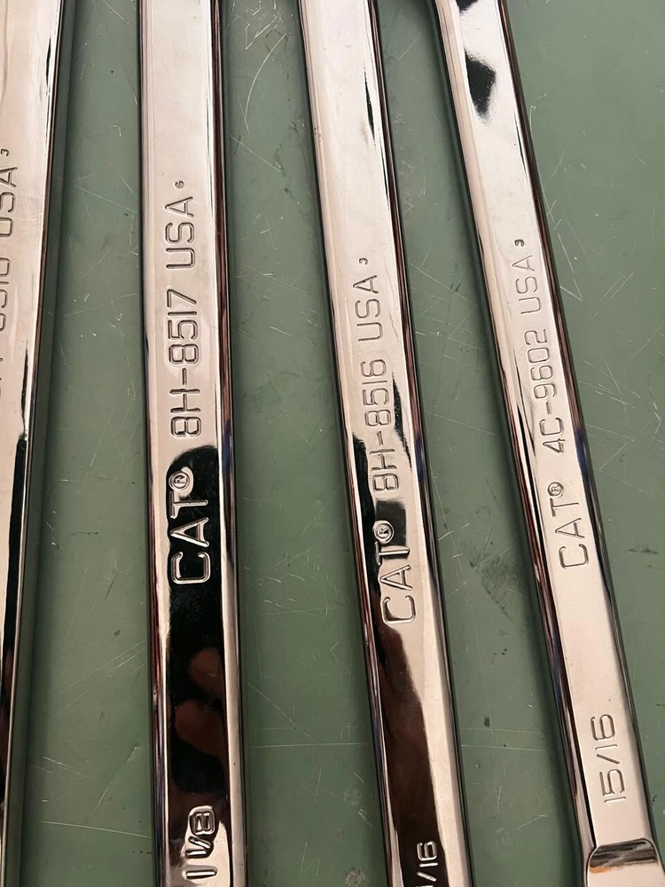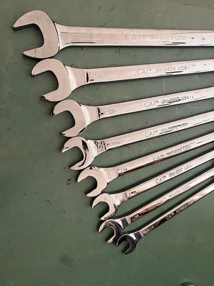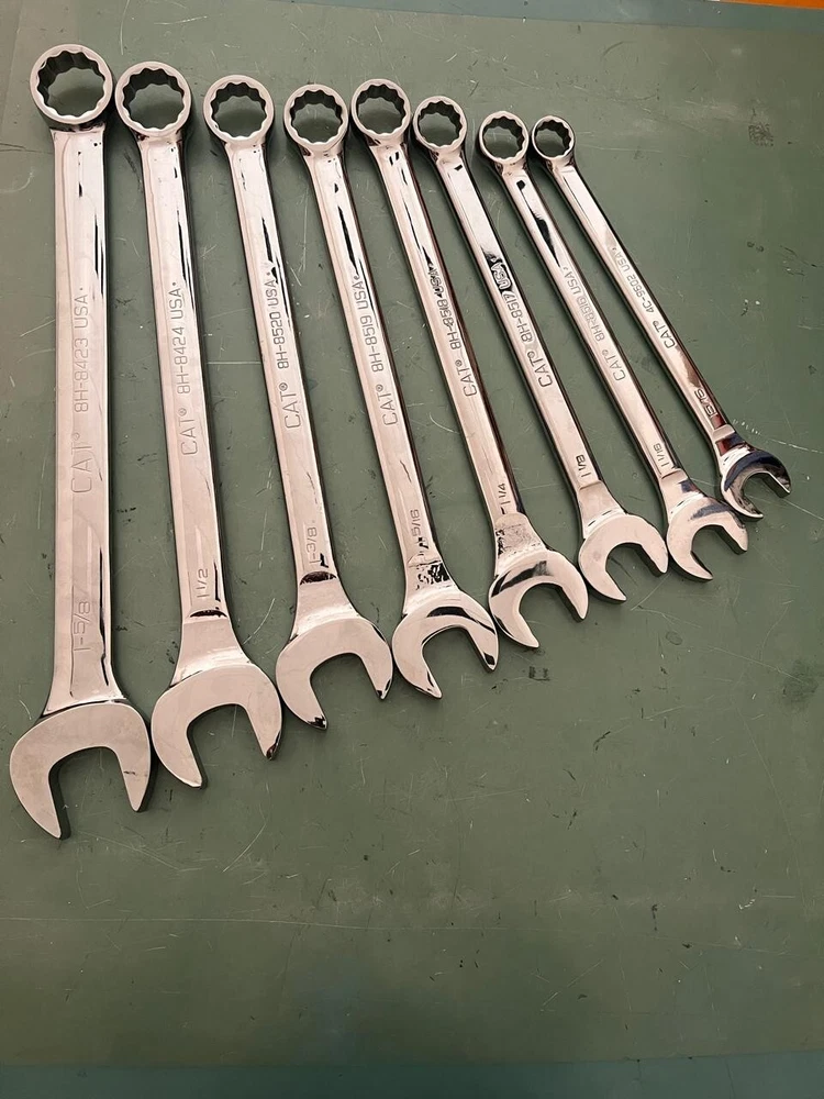 set of 8 original caterpillar Combination Wrenches 12 Point Double ended box-end wrench on one side and an open-end wrench on the other SET MODEL PART NUMBER AS FOLLOWING : CAT 8H-8516 CAT 8H-8517 CAT 8H-8518 CAT 8H-8519 CAT 8H-8520 CAT 8H-8524 CAT 8H-8523 PLEASE NOTE ADDITIONAL CHARGES FOR CUSTOMS AND TAX MIGHT APPLY ON THE DESTINATION COUNTRY -AND THE BUYER WILL PAY FOR THOSE CHARGES