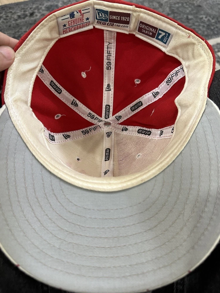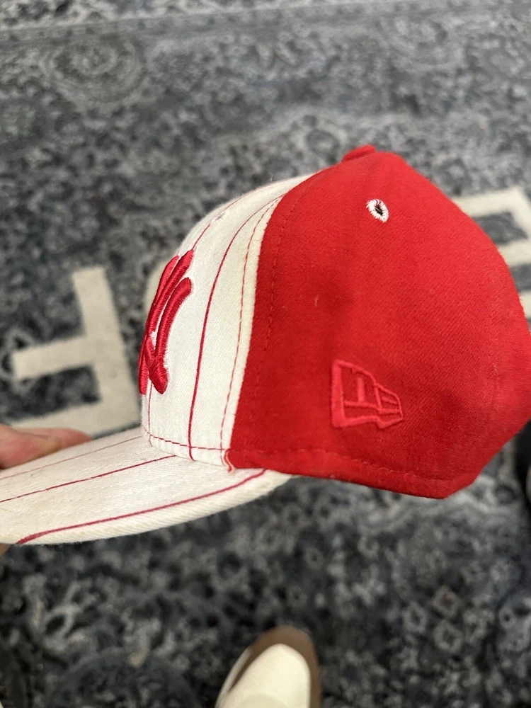 size 7 1/3 red and white striped yankees fitted hat
