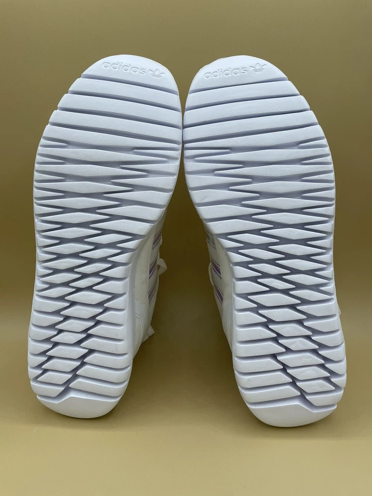 Elevate your child's activewear game with these Adidas Originals Flex Junior sneakers. Designed with a low top shoe shaft style and lace-up closure, these sneakers provide a comfortable fit for gym and training activities, cross-training, running, and jogging. The rubber outsole material ensures durability and traction, while the cushioned and reflective features provide added comfort and safety. These unisex kids' shoes come in a classic white color with the Adidas logo as an accent. The synthetic upper material and foam insole material make these shoes ideal for summer, fall, and spring seasons. With a standard shoe width and the Originals Flex J model, these sneakers are a perfect fit for kids with UK Shoe Size 6.5 and US Shoe Size 7.
